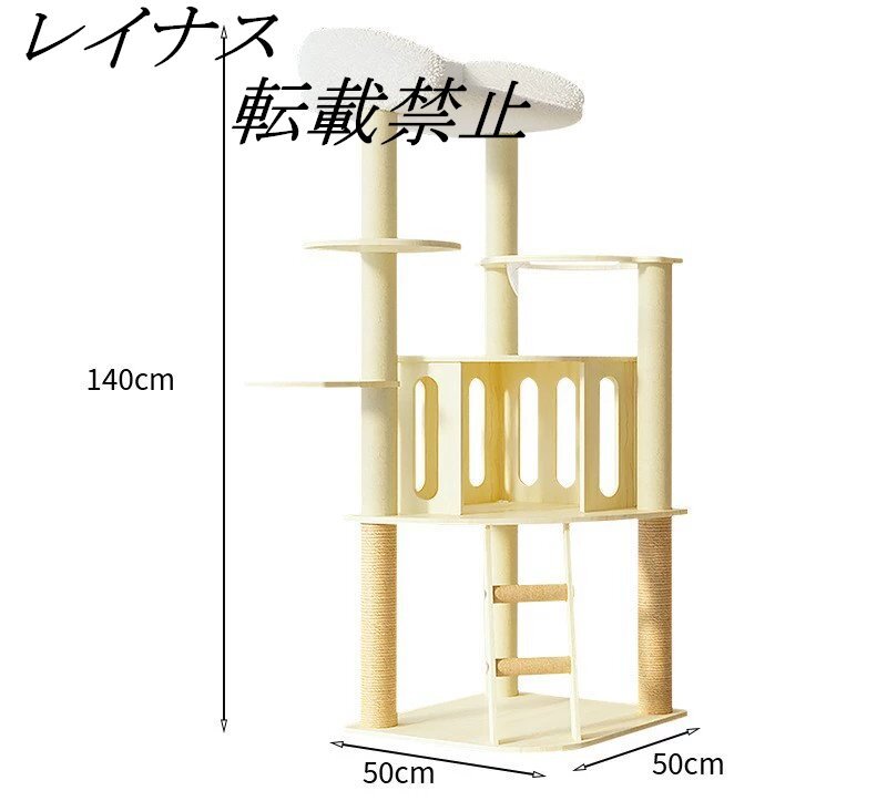 大型木製 キャットタワー一体型 猫用ハウス付き 爪とぎポール 省スペース設計 スペースキャプセル風キャットタワー