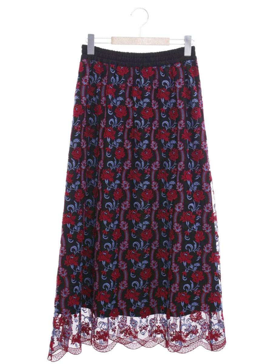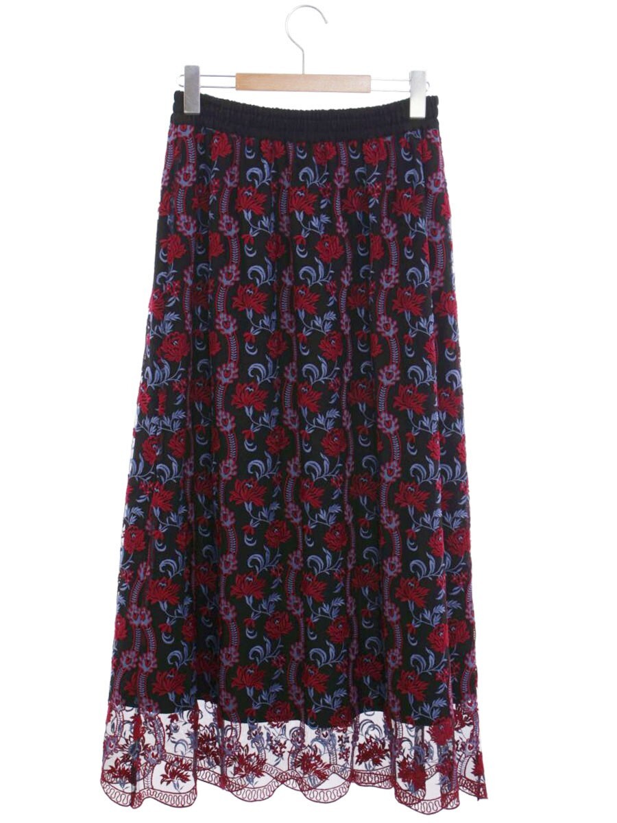 グレースコンチネンタル 01214 21015-00 スカート 36 ブラック フラワーモチーフ 刺繍 メッシュ地 IT6DDEIH261W