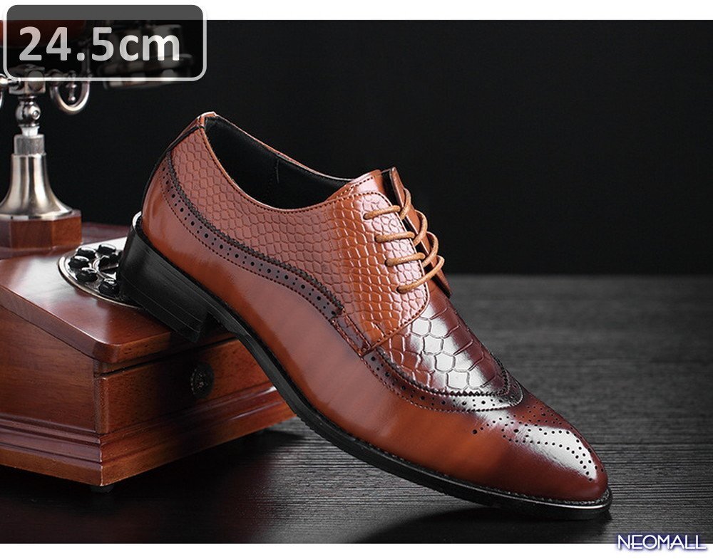 売れ筋商品 ☆ メンズ ビジネス レザー シューズ ブラウン サイズ 24.5cm 革靴 靴 カジュアル 屈曲性 通勤 軽量 【423】