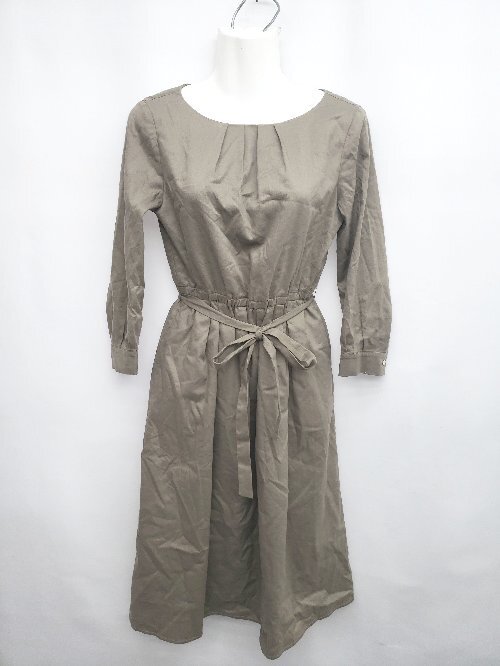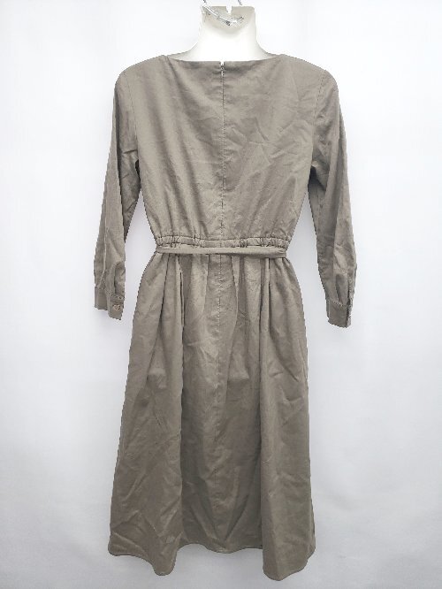 ◇ ◎ NATURAL BEAUTY ギャザー キレイめ バックジップ 長袖 膝下丈 ワンピース サイズ36 カーキ系 レディース P