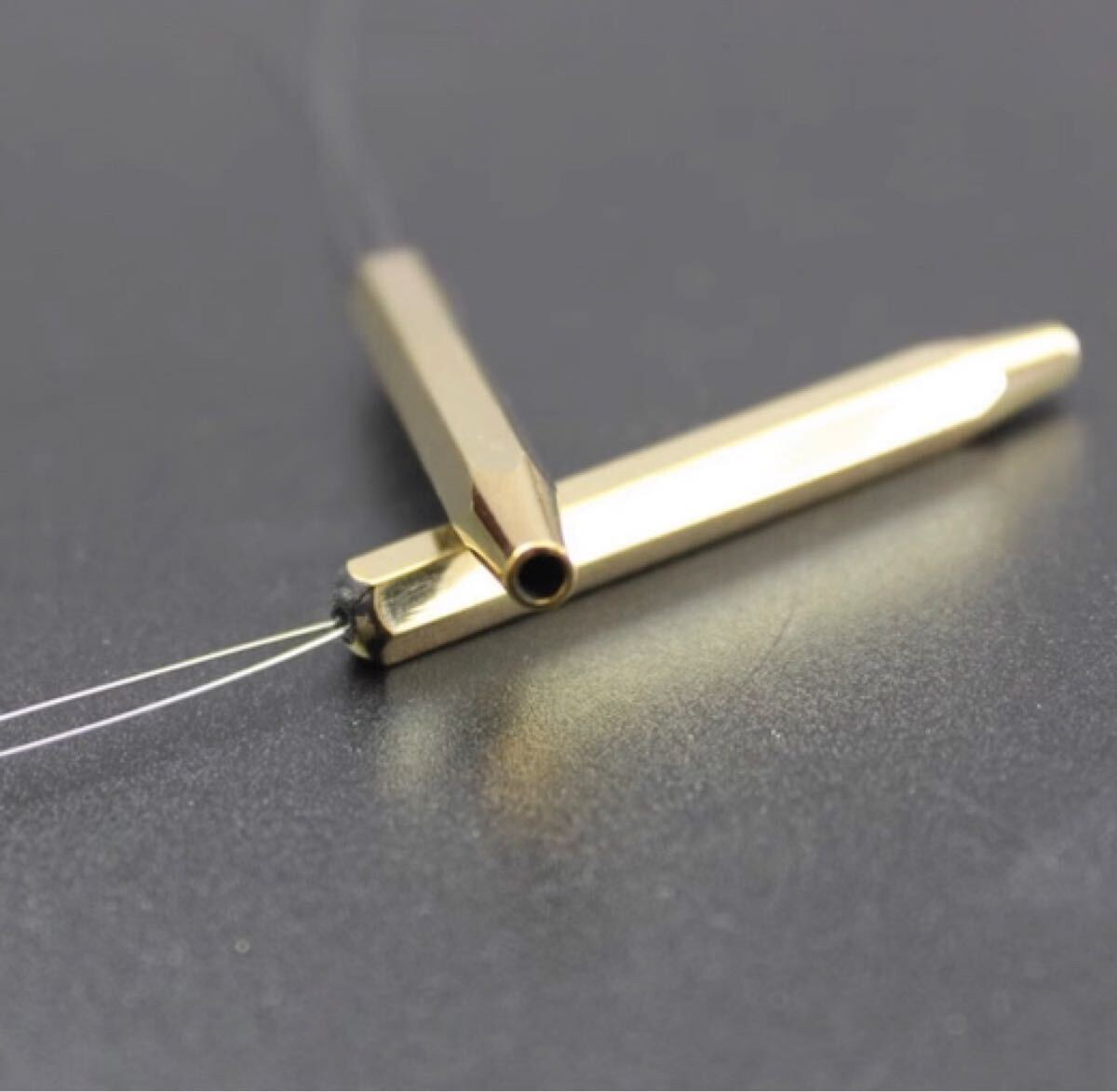 ボビンホルダーのノズルへの根巻糸通しを簡単にでき、組糸の中通しループ作りやフロロ 芯挿入を簡単にします。