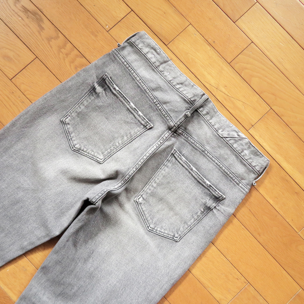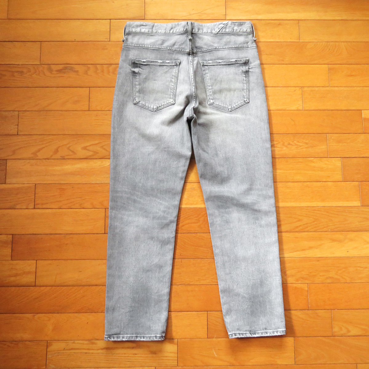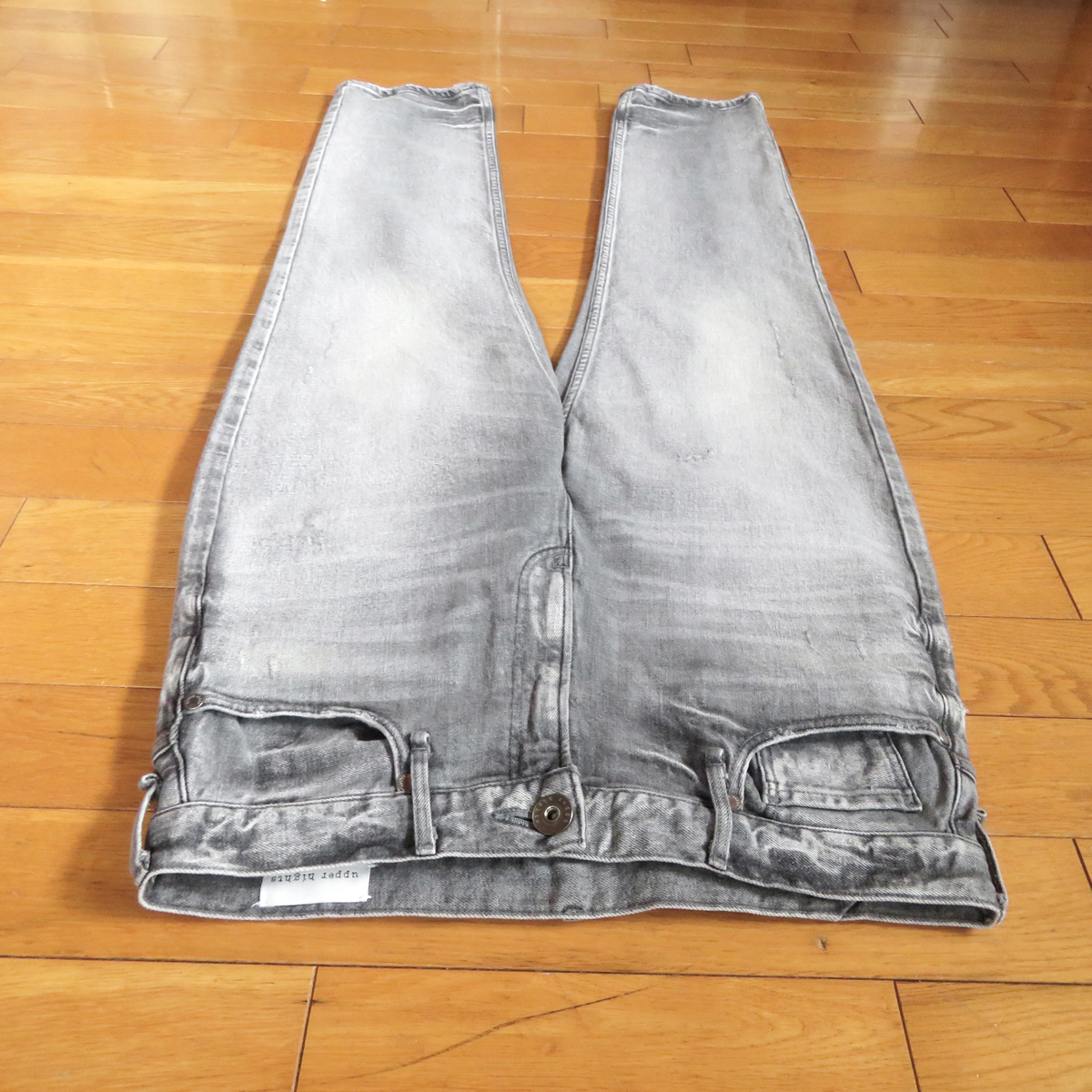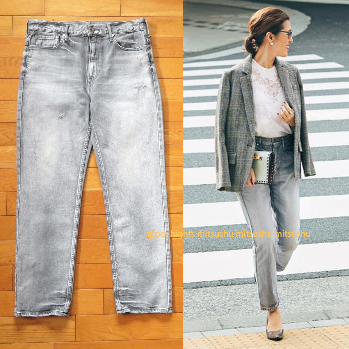 アッパーハイツの人気の「THE EIGHTY'S」で、すごく可愛いシルエットになっています。 少し深めの股上で、ウエストをしっかりと包み込んでくれるハイライズ仕様、 膝下は太過ぎも細過ぎもしない、美しいテーパードラインのシルエットです。 元々ダメージ加工されているデニムで色落ちや ポケットの軽いダメージ、前側のダメージなどは最初からの加工です。 軽めにストレッチが入った生地は、柔らかくて、とても履きやすいですよ。(*^ ^*) 右側写真は、大草直子さん着用の写真です。とっても気に入っているデニムだとありました。 すごく素敵ですね。シルエット等の参考にしてみてください。 お色は、ショップではシルバーと表記されていました。(少し明るめなグレーという感じです) 本当に良いデニムだと思います。お勧めです!いかがでしょうか。 【コンディション】 多少の使用感はありますが、大きなダメージ、目立つ汚れ等はありません。 まぁまぁきれいかと思います。十分着用していただけます。 ------------------------------------------------ 【表記】サイズ 27 【実寸】 平置き ◆ ウエスト 39cm×2(78cm)(平置き後ろ直線測定) ◆ 股上 29.5cm ◆ 股下 66cm ◆ 裾幅 18cm ◆ わたり幅 25cm(付け根から10cm下を水平に計測) 前後程度になります。※平置き、素人採寸になりますので、多少の誤差はお許し下さい。 ------------------------------------------------ 【材質】 綿98% ポリウレタン2% 【色】 シルバー グレー 【USED品】 ------------------------------------------------ ◆ 他にもいろいろデニムなど出品していますので、よかったら見ていってください。 ◆ もちろん同梱もできますので、お気軽にご質問ください。 ◆ 気持ちの良いお取引を目指していますので、ご質問は事前にお気軽にどうぞ。 終了直前だとお答えできない場合があります。どうぞよろしくお願い致します。 | ||||