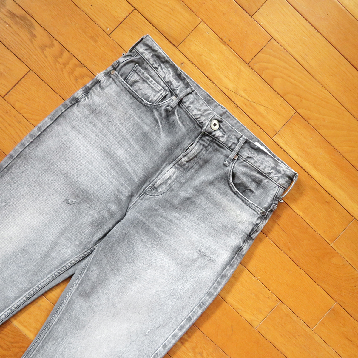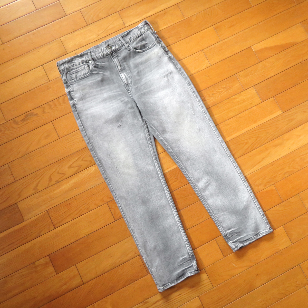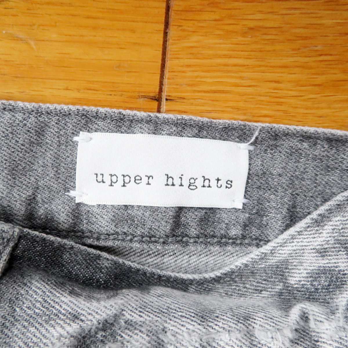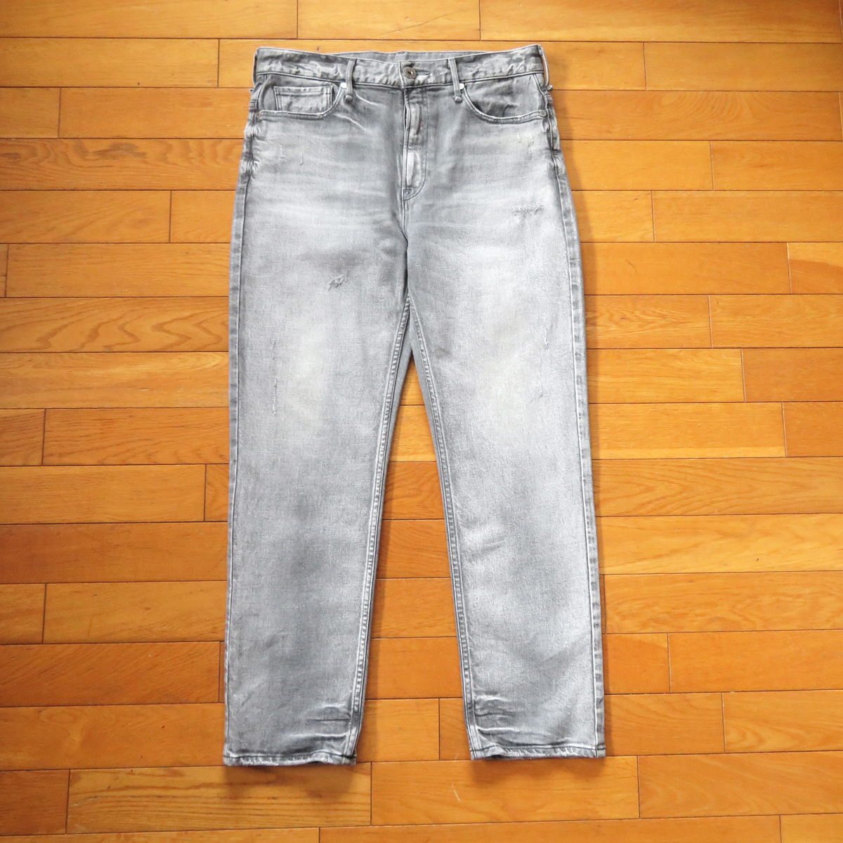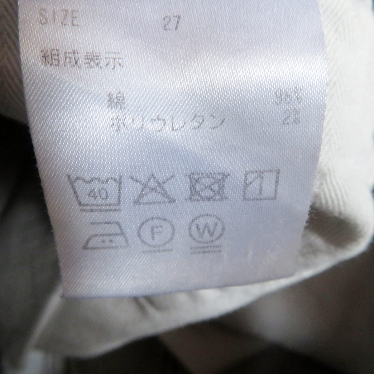 アッパーハイツの人気の「THE EIGHTY'S」で、すごく可愛いシルエットになっています。 少し深めの股上で、ウエストをしっかりと包み込んでくれるハイライズ仕様、 膝下は太過ぎも細過ぎもしない、美しいテーパードラインのシルエットです。 元々ダメージ加工されているデニムで色落ちや ポケットの軽いダメージ、前側のダメージなどは最初からの加工です。 軽めにストレッチが入った生地は、柔らかくて、とても履きやすいですよ。(*^ ^*) 右側写真は、大草直子さん着用の写真です。とっても気に入っているデニムだとありました。 すごく素敵ですね。シルエット等の参考にしてみてください。 お色は、ショップではシルバーと表記されていました。(少し明るめなグレーという感じです) 本当に良いデニムだと思います。お勧めです!いかがでしょうか。 【コンディション】 多少の使用感はありますが、大きなダメージ、目立つ汚れ等はありません。 まぁまぁきれいかと思います。十分着用していただけます。 ------------------------------------------------ 【表記】サイズ 27 【実寸】 平置き ◆ ウエスト 39cm×2(78cm)(平置き後ろ直線測定) ◆ 股上 29.5cm ◆ 股下 66cm ◆ 裾幅 18cm ◆ わたり幅 25cm(付け根から10cm下を水平に計測) 前後程度になります。※平置き、素人採寸になりますので、多少の誤差はお許し下さい。 ------------------------------------------------ 【材質】 綿98% ポリウレタン2% 【色】 シルバー グレー 【USED品】 ------------------------------------------------ ◆ 他にもいろいろデニムなど出品していますので、よかったら見ていってください。 ◆ もちろん同梱もできますので、お気軽にご質問ください。 ◆ 気持ちの良いお取引を目指していますので、ご質問は事前にお気軽にどうぞ。 終了直前だとお答えできない場合があります。どうぞよろしくお願い致します。 | ||||