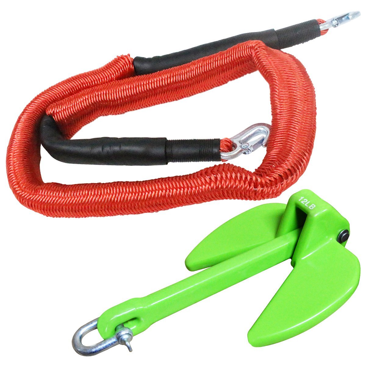 【新品即納】『伸縮ロープ/アンカーセット』爪型 アンカー 10LBS 4.5kg 緑 グリーン 6M フロート のびのび アンカー ロープ 赤