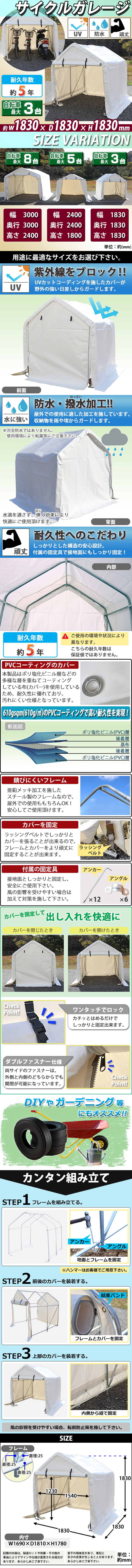| 商品名 | 送料無料 サイクルガレージ 3台用 約幅1830×奥行1830×高さ1830mm 白 テント 倉庫 物置き 屋外収納 ガレージ パイプ倉庫 ガレージテント サイクルテント イージーガレージ バイク 自転車 農機具 保管 雨除け 駐輪場 車庫 自転車置き場 ポート ハウス ホワイト tent66w183wh |