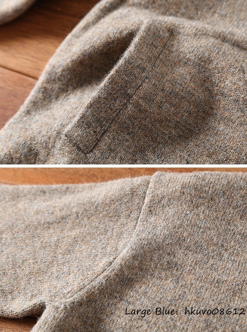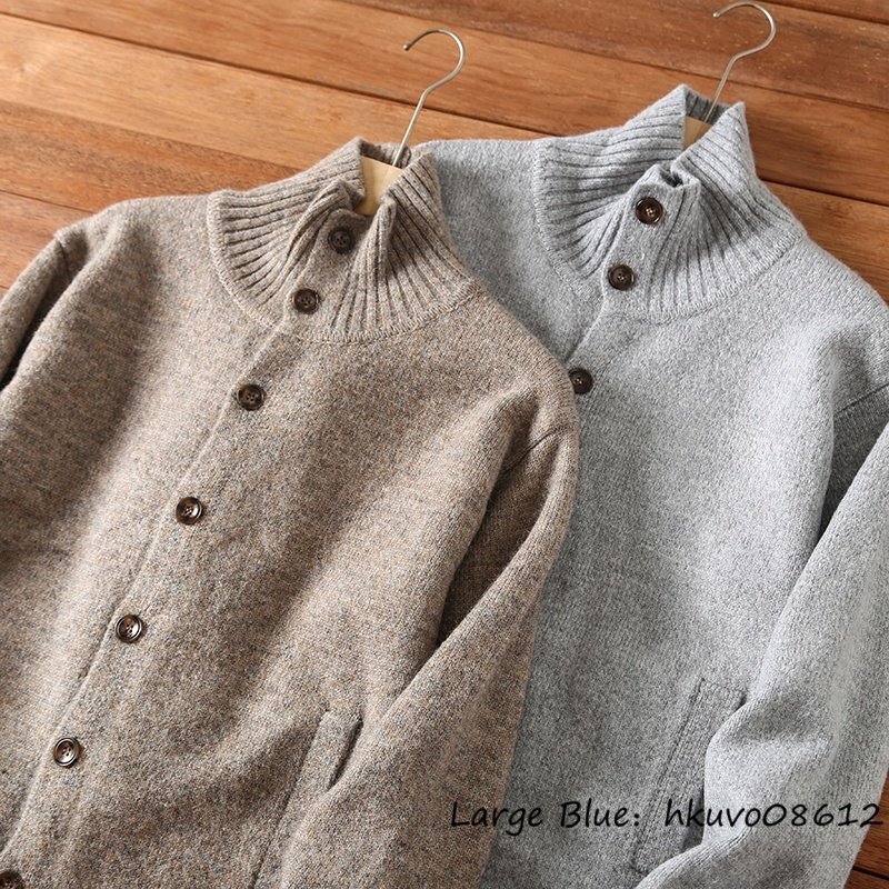 新品特売*ニットジャケット メンズ ウール混 ハイネック 厚手 太編み カーディガン ニットセーター タートルネック 暖かい 秋冬 カーキ M