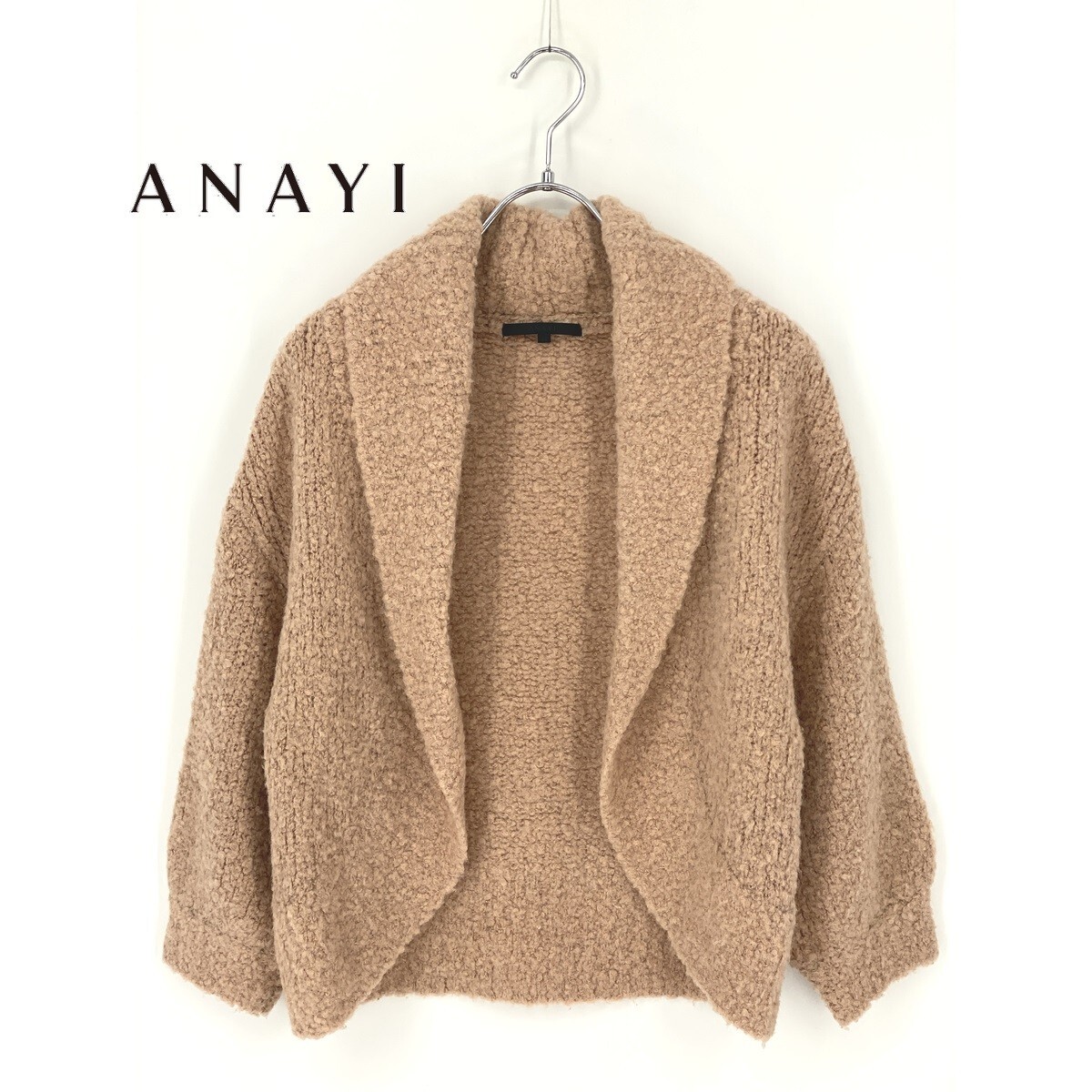 B0344/極美品 ANAYI アナイ ウール アルパカ ヘチマ ショールカラー ボタンレス 前開き ニット リブ カーディガン 38 M ピンク レディース