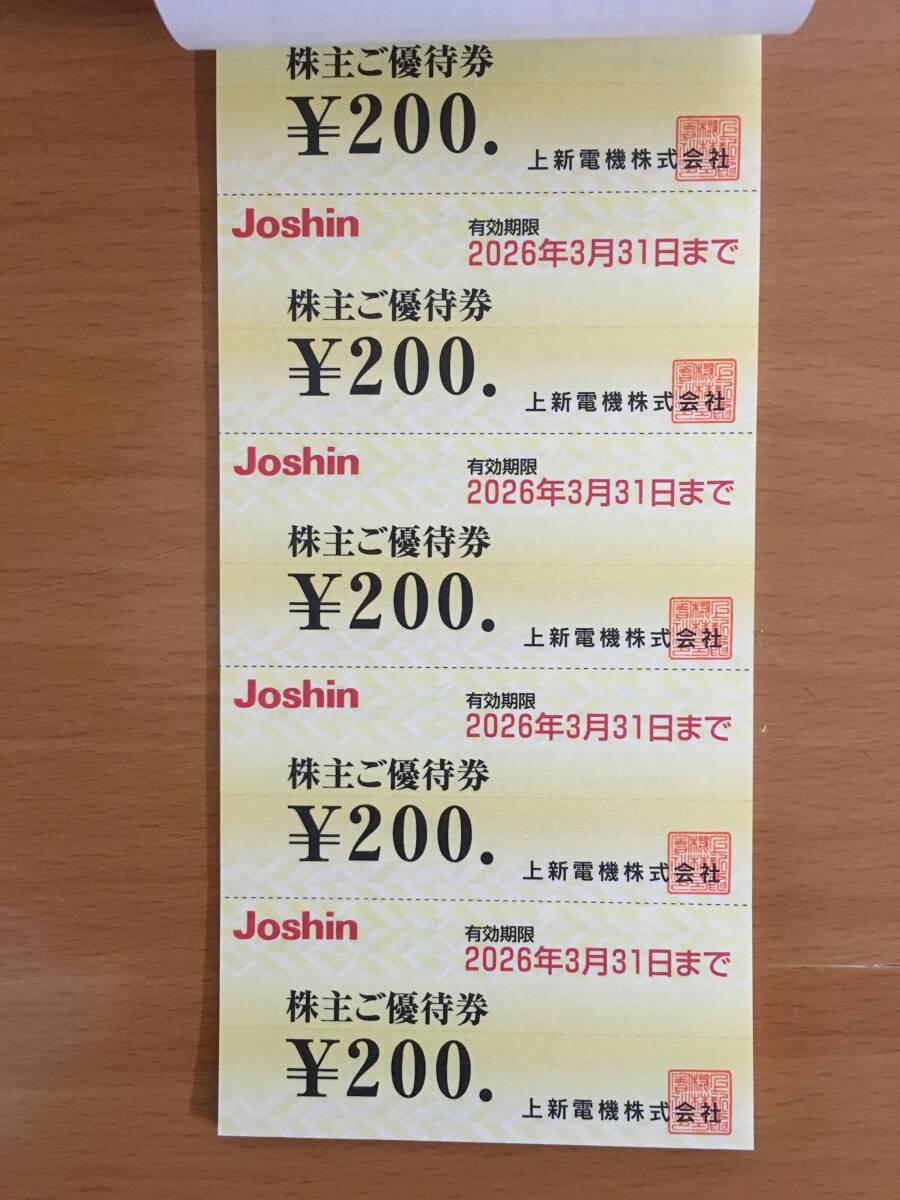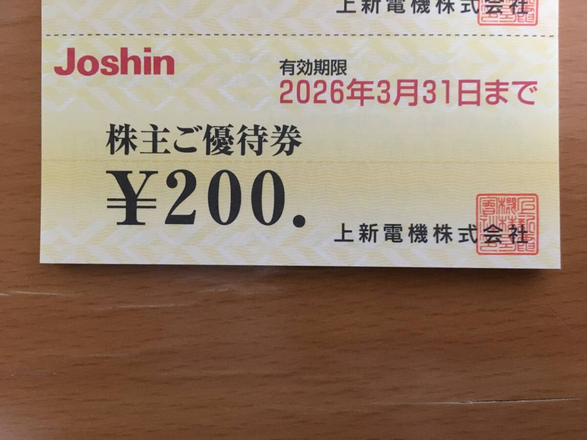 上新電機 Joshin 株主優待 10,000円分(200円券 x 50枚) ~2026年3月31日まで