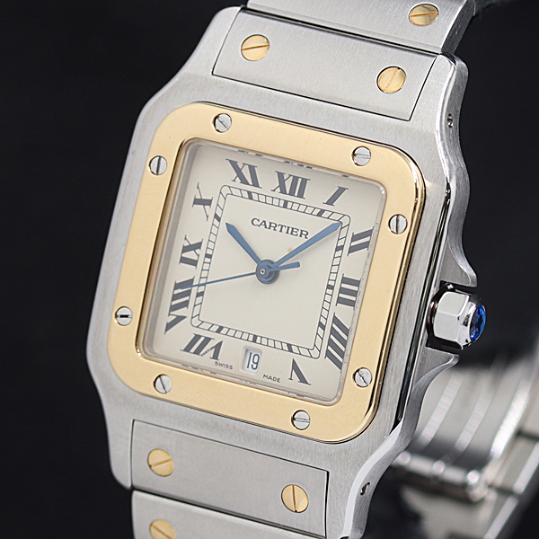 1円 稼働 カルティエ サントスガルべ YG×SS 1566 W20011C4 QZ アイボリー文字盤 メンズ腕時計 0038830 12JWT SMZ