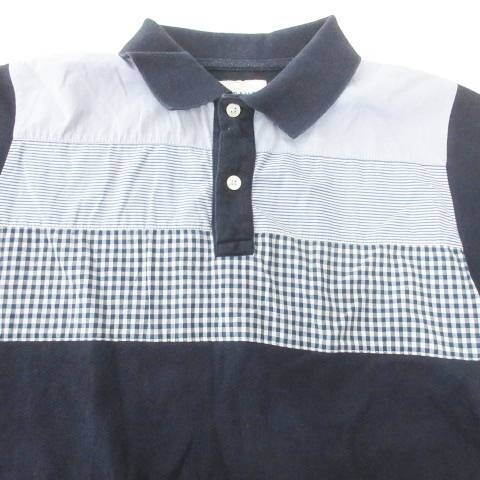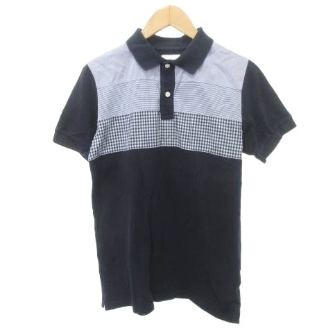 ビームス BEAMS ポロシャツ 半袖 チェック サイドスリット 薄手 Sサイズ 紺 ネイビー ■YHS11 メンズ