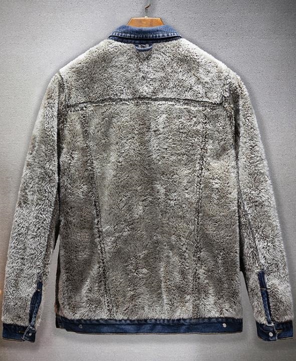 裏フリース デニムジャケット 新品・メンズ 裏ボア ジージャン バイクジャケット 作業服 ライトアウター 冬用 ブルゾン【DS8666#】レトロブルー 5XL