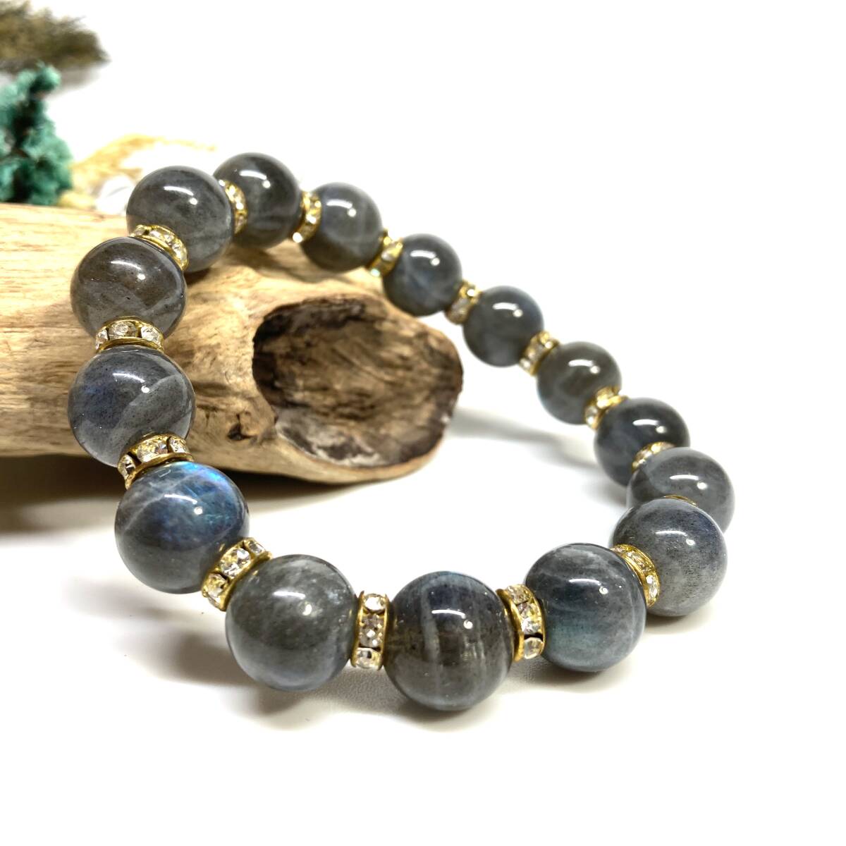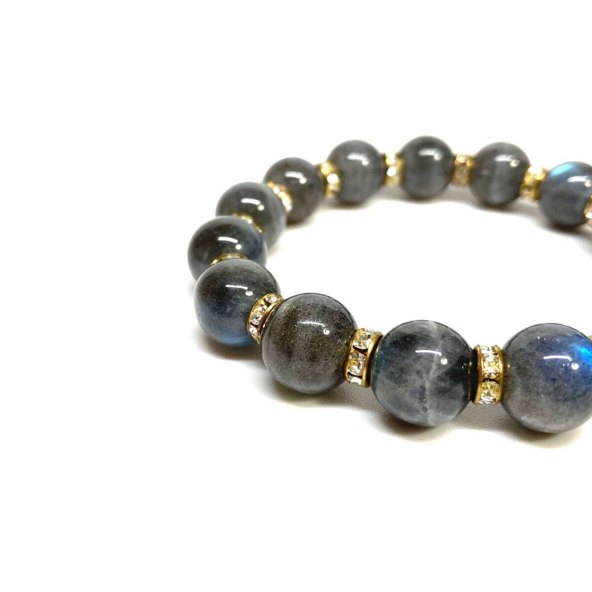 こちらは、12mm玉のラブラドライトを使用したブレスレットです。石との間にはロンデルを挟み高級感を演出しています。シンプルなデザインですのでどんなコーディネートとも合わせ易いブレスレットです。石大きさは12mm玉です。内周約18cmです。(サイズ変更の場合は取引ナビにてご連絡をお願いします。) 数に限りがございますので気になる方はお早めにどうぞ。