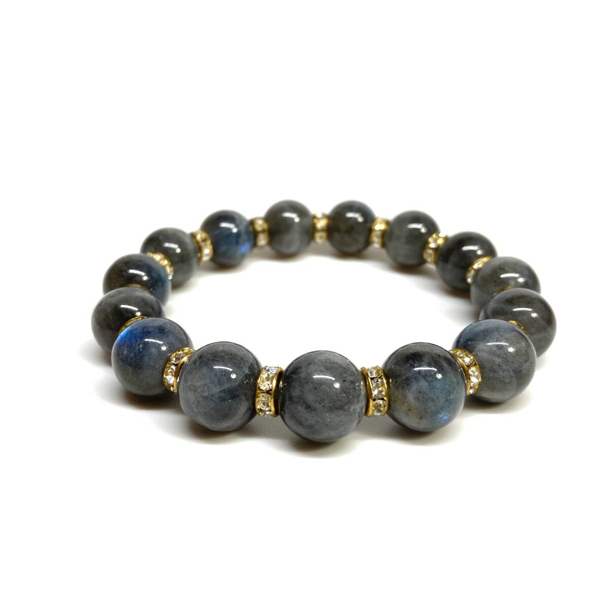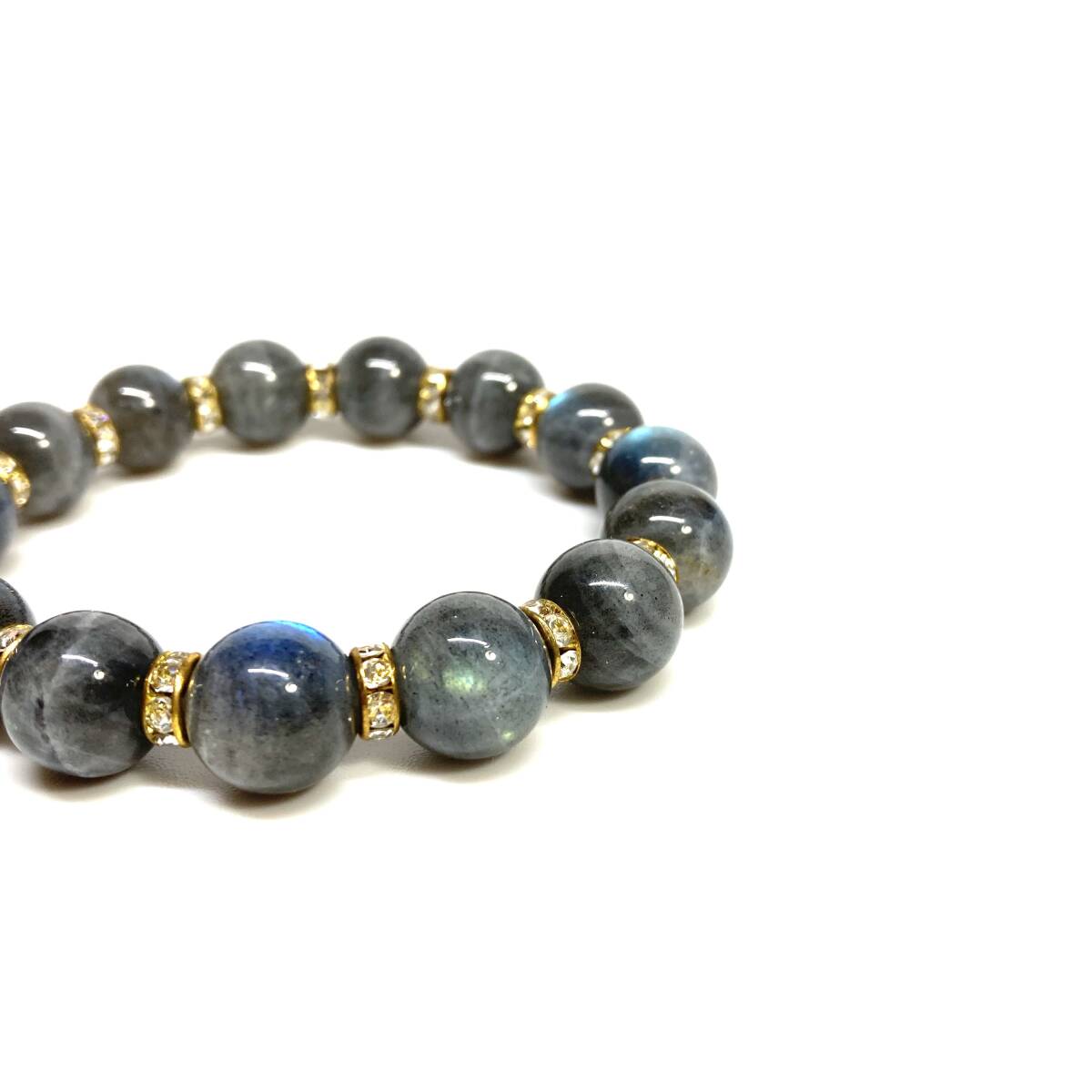 ラブラドライト パワーストーン ブレスレット 12mm (ゴールド) 天然石ブレス 数珠ブレス メンズ・レディース 男性 女性 幸運 開運 浄化