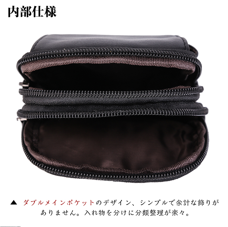 【多層収納で整理しやすい】 正面が一つマグネット式ポケットが配置、そしてメイン収納部が二層のデザインで、入れ物が分けに分類整理できる。スマホやタバコなど使用頻度の高い物を収納するのにお勧めです。