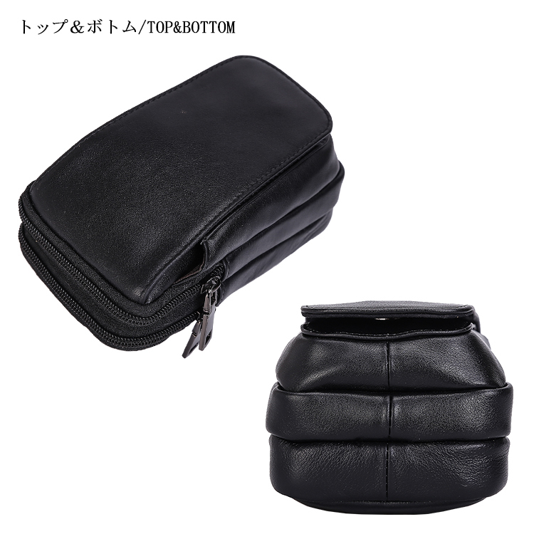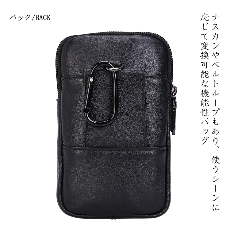 TIDING カラビナ付き 本革 メンズ ウエストバッグ ベルトポーチ アクセサリーポーチ スマホ対応 ブラック 潮牛