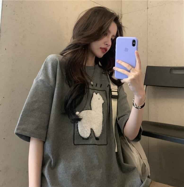 韓国風 レディース 半袖Tシャツ 新しい夏 気質 ファッションTシャツ 2XL グレー