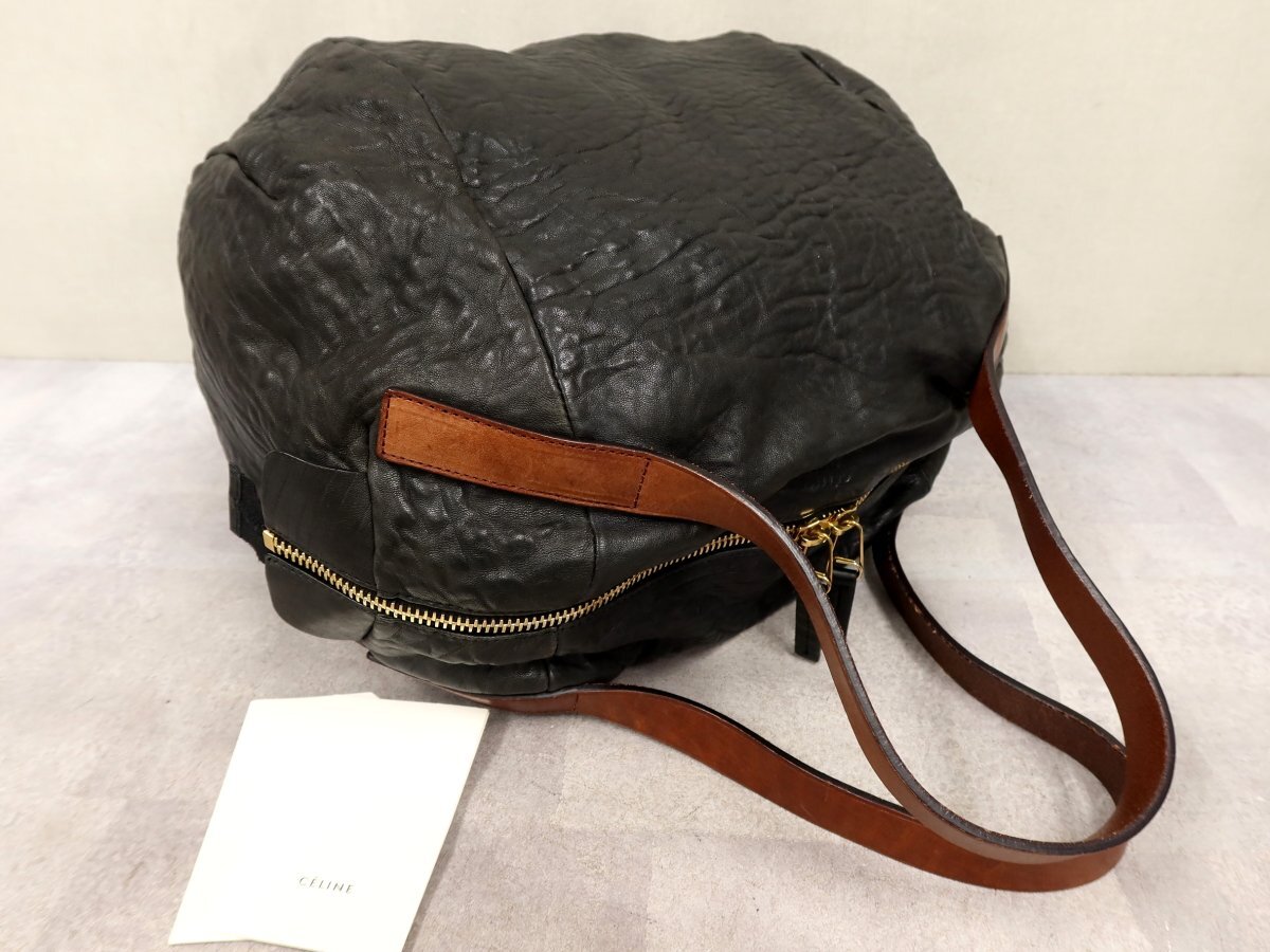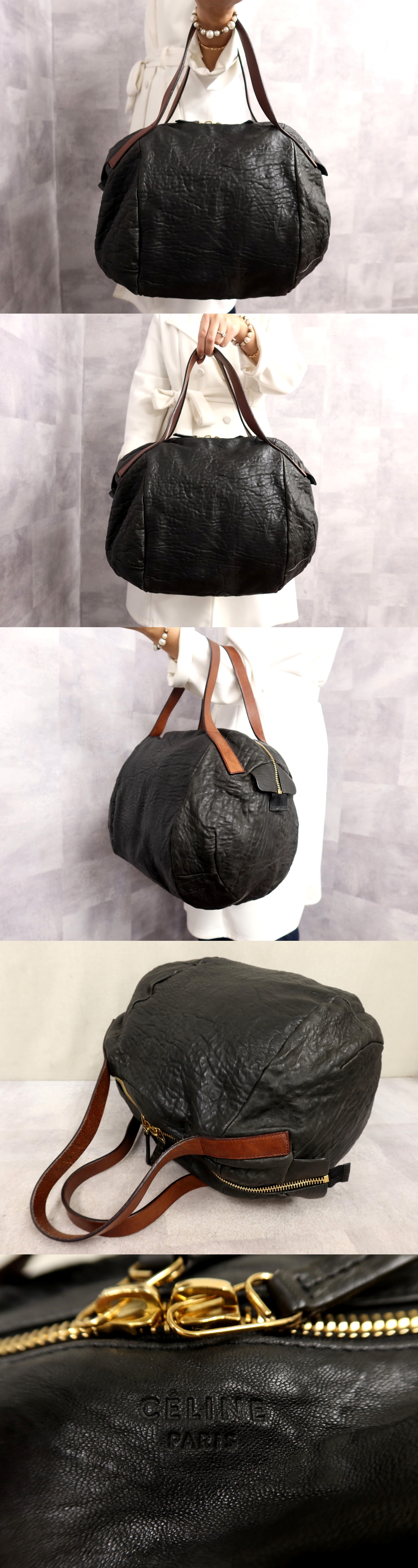 ●超美品●CELINE セリーヌ●ロゴ型押し●カーフ レザー 本革●トート バッグ●黒 茶●ゴールド金具●A4 収納●書類 かばん●Js63286