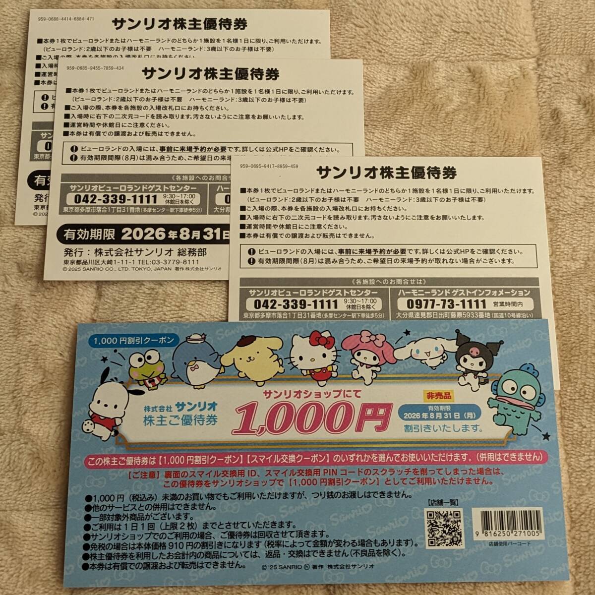 サンリオショップにて1,000円割引クーポンまたはsanrio+5000スマイル交換クーポンとしていずれかを選んで使えるもの