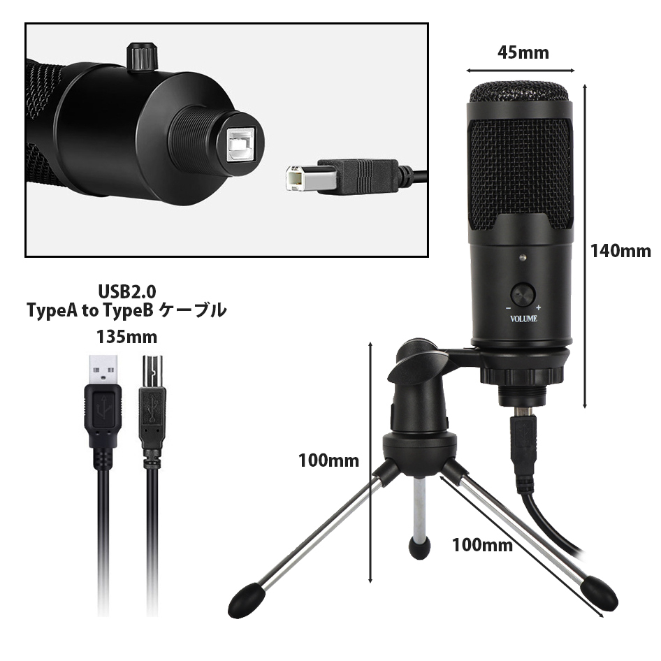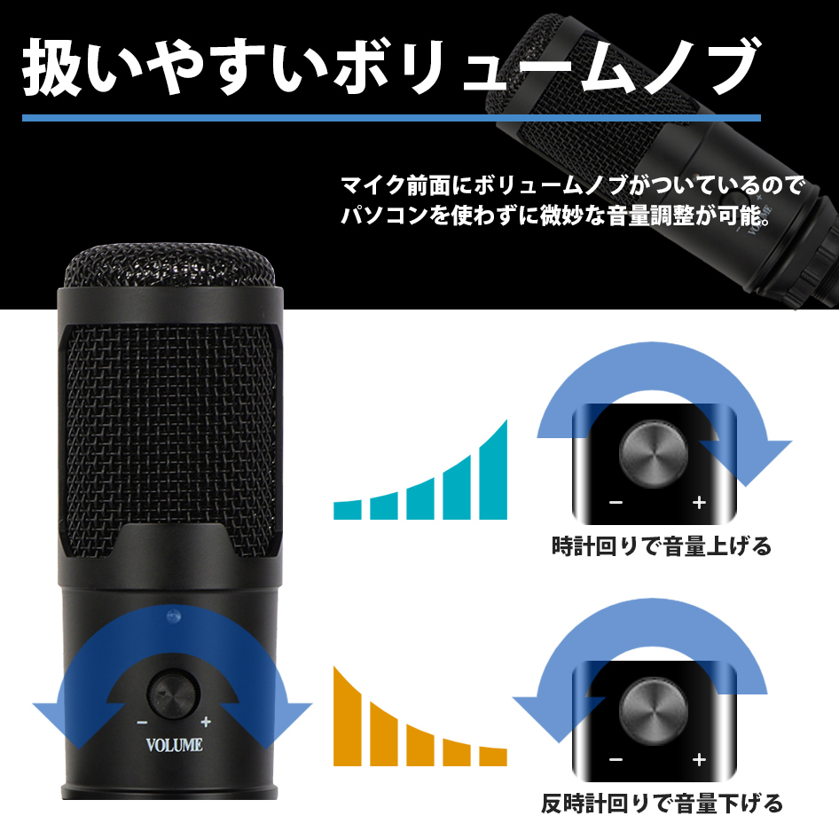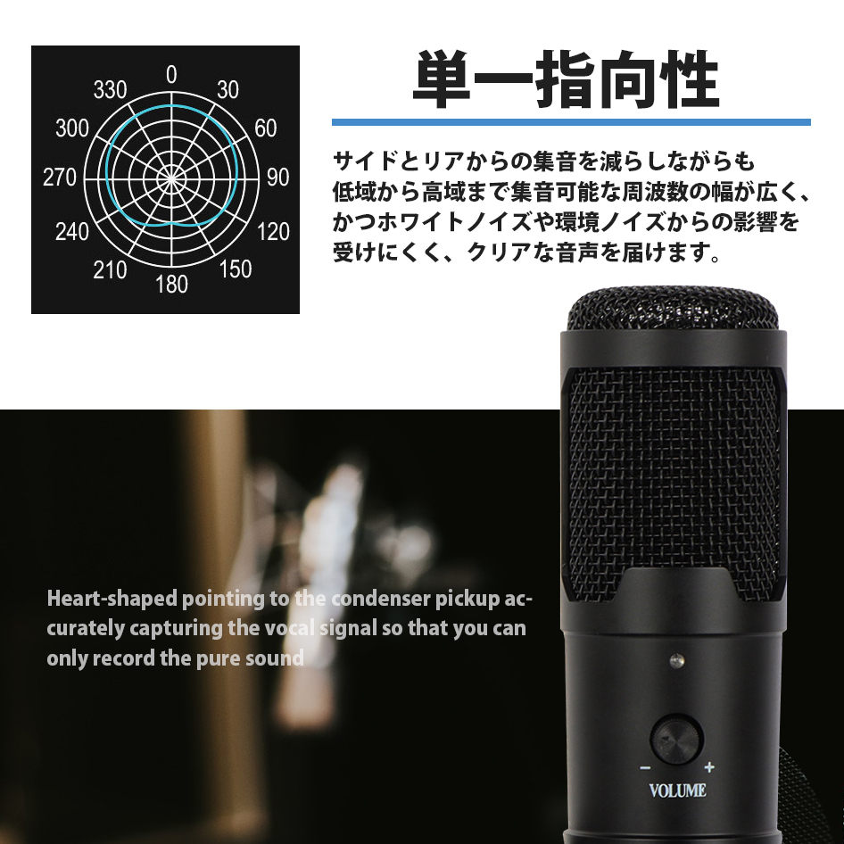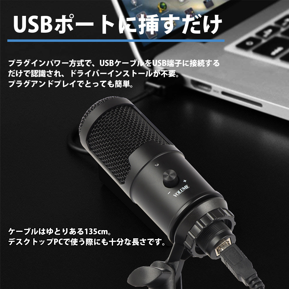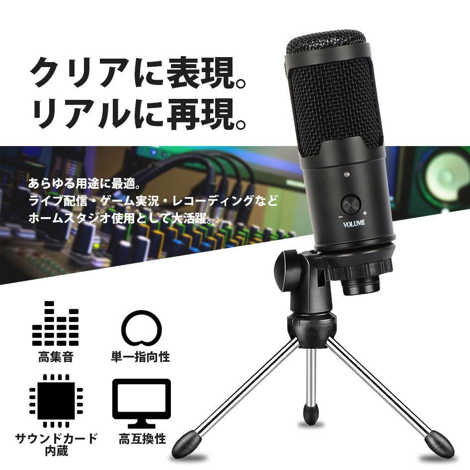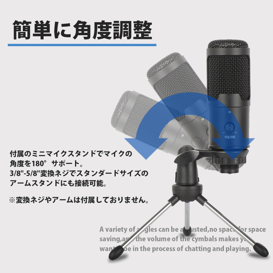 <USBマイク USB コンデンサーマイク PC用マイク ネット配信 ゲーム実況 ZOOM会議 ボイズチャット 単一指向性 音量調節可能 三脚マイクスタンド付属 送料無料>