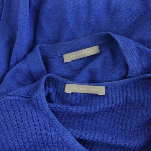 セオリーリュクス theory luxe アンサンブルニット カーディガン 長袖 カットソー ノースリーブ シアー 麻 リネン 38 青 ブルー