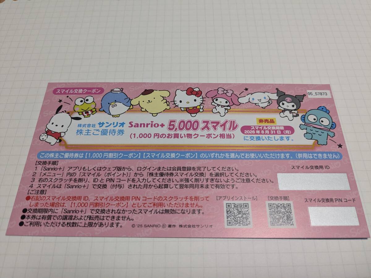 サンリオショップ、サンリオオンラインショップで使える優待券1枚。