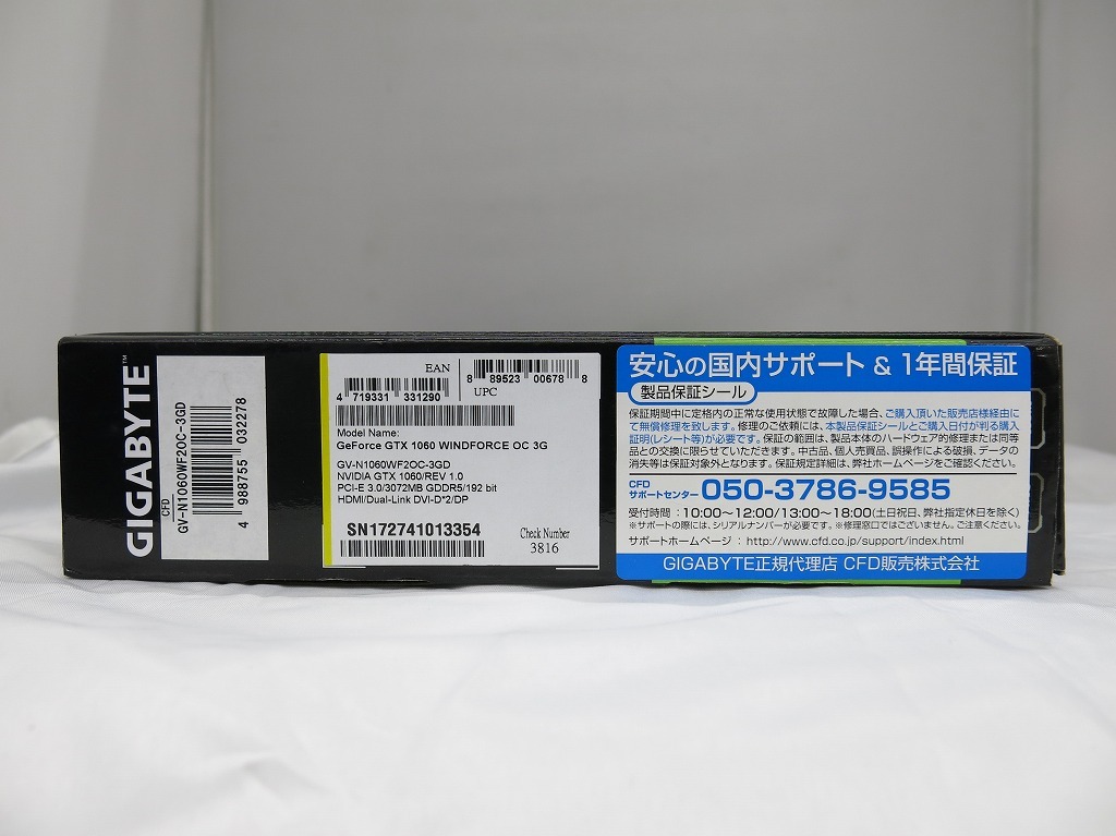 商品名GeForce GTX 1060 WINDFORCE OC 3GB GDDR5 グラフィックスカード GV-N1060WF20C-3GD
