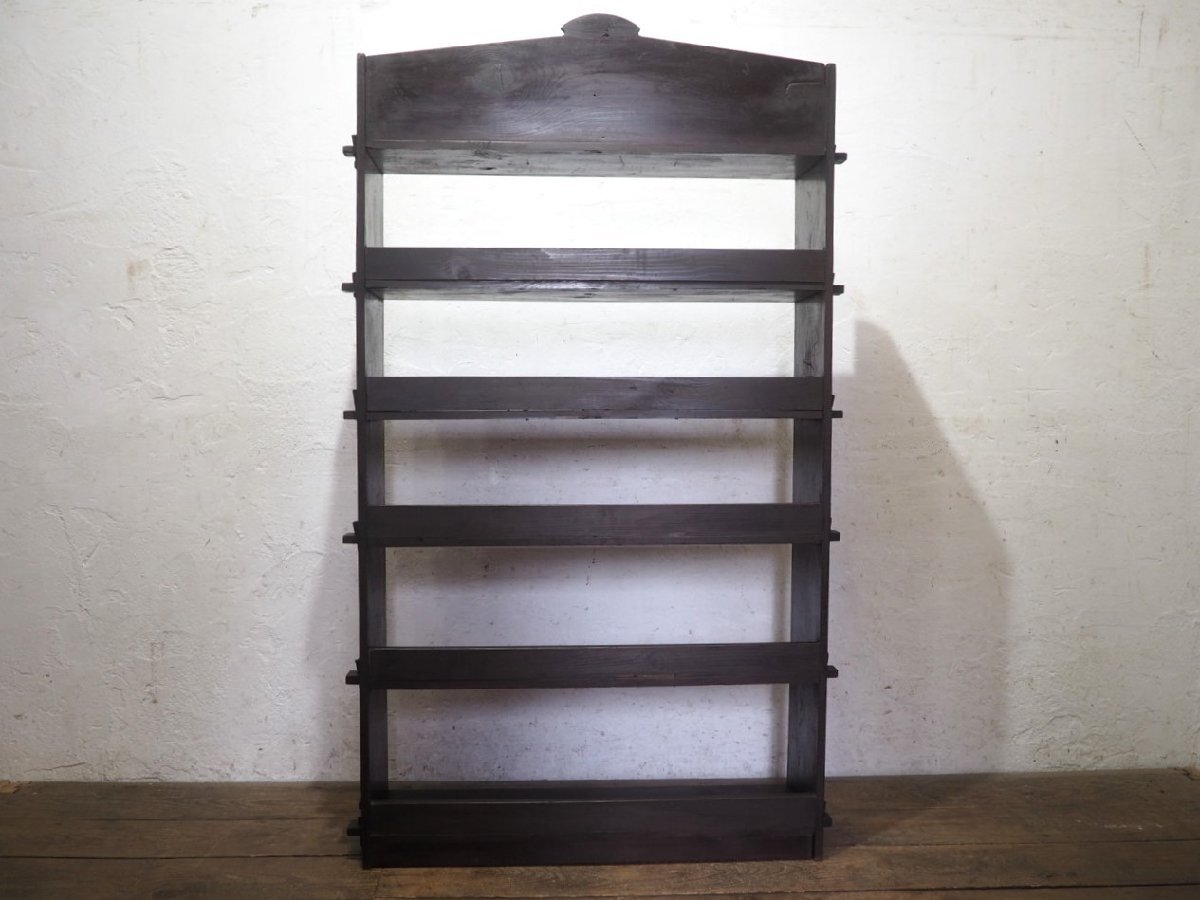 タ荷V0580◆H154,5cm×W84cm◆ヴィンテージ◆楔式のレトロな古い木製ディスプレイラック◆飾り棚 陳列棚 収納棚 本棚 展示台N(ヤD)松
