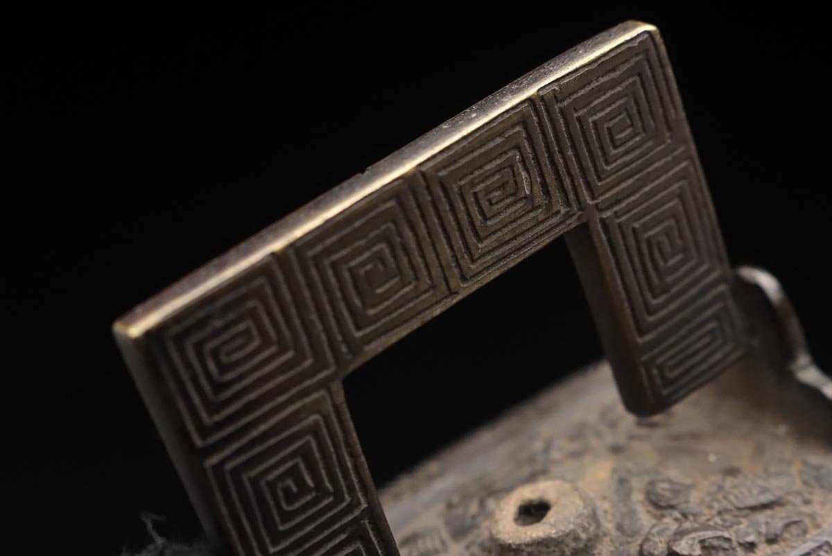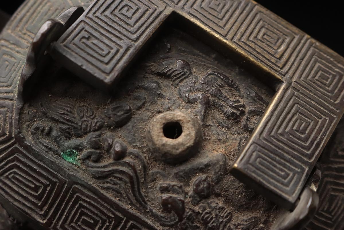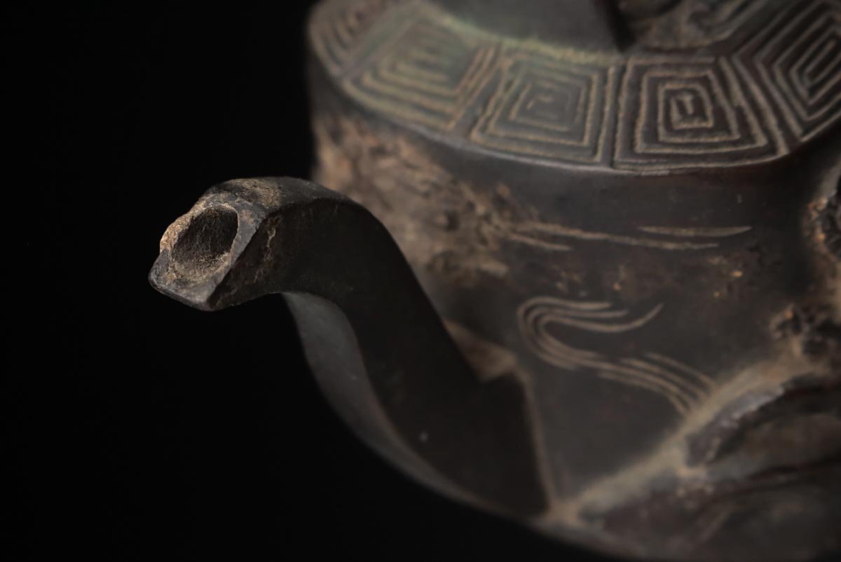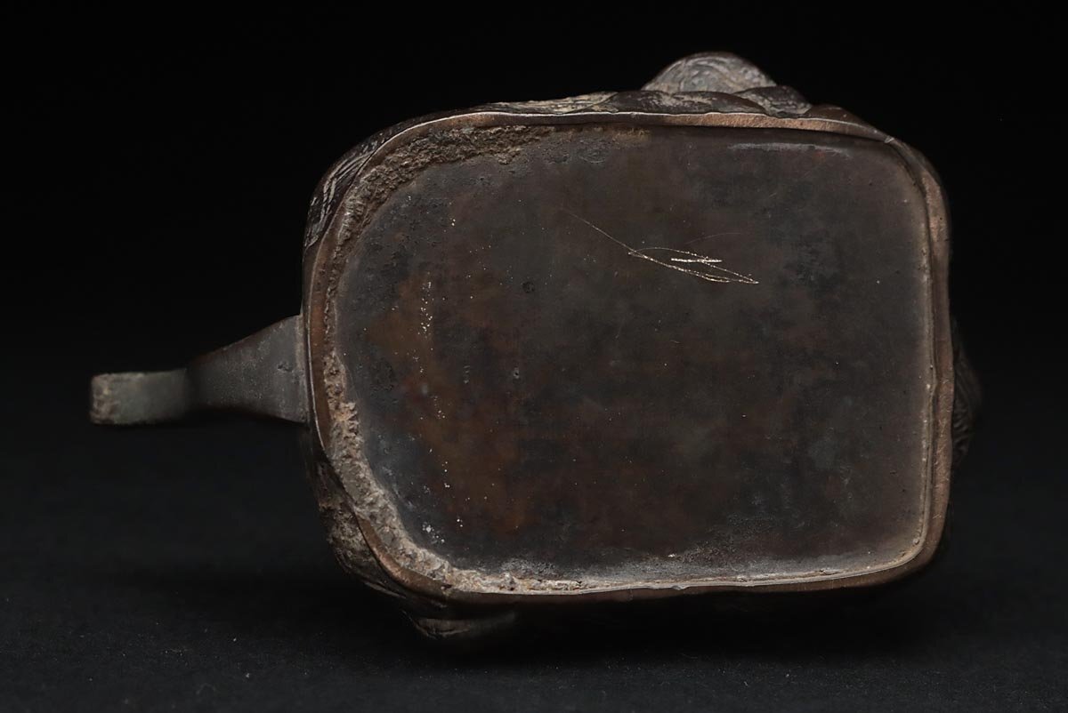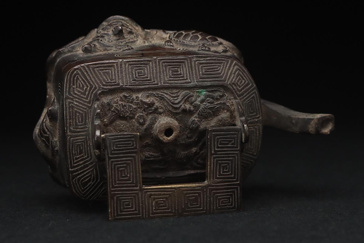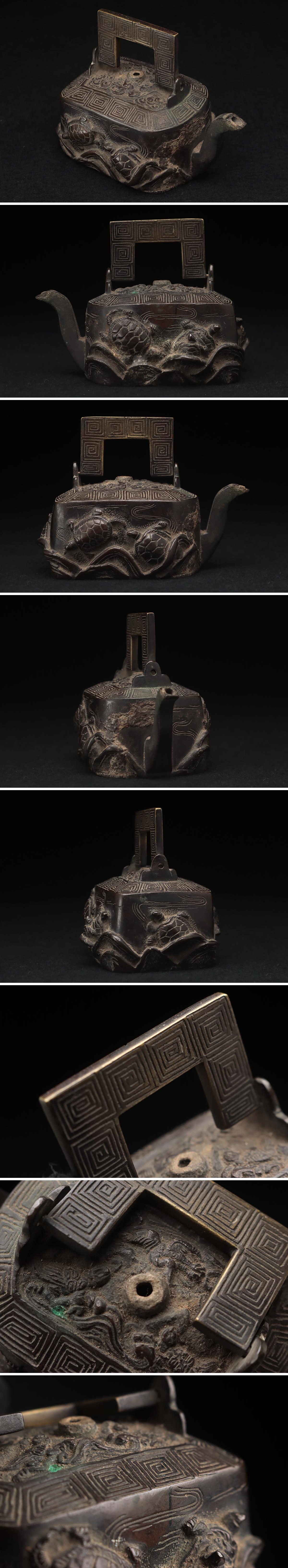 | ◆ 時代金工 古銅 波に亀盛上文 水注形 水滴 幅11cm / 重395g・銅群亀図水滴・硯滴 書道具 文房四宝 古美術 ◆