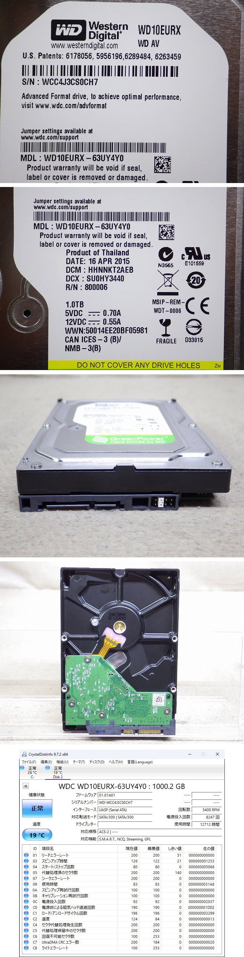 | 商品名 | Kネま2364 WD 3.5インチ SATA 内蔵HDD 1TB WD10EURX-63UY4Y0 パソコン周辺機器 PCパーツ ハードディスク |