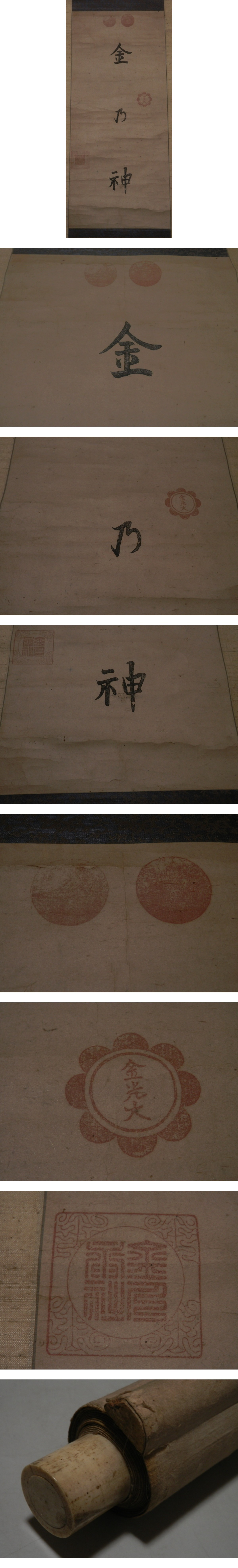 【木版】金光教祖の呼称!!金光大の朱印入り【金乃神の掛軸】掛け軸 岡山県