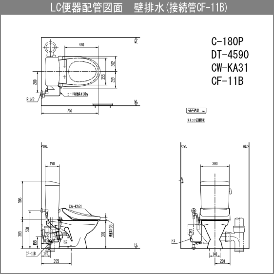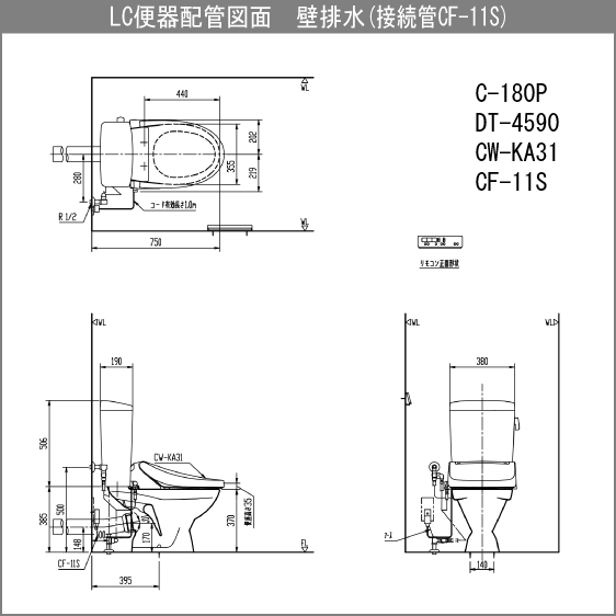 便器 LC便器(手洗なし・床上排水) シャワートイレセット(壁リモコンタイプ) C-180P,DT-4590,CW-KA31 リクシル イナックス LIXIL INAX ★