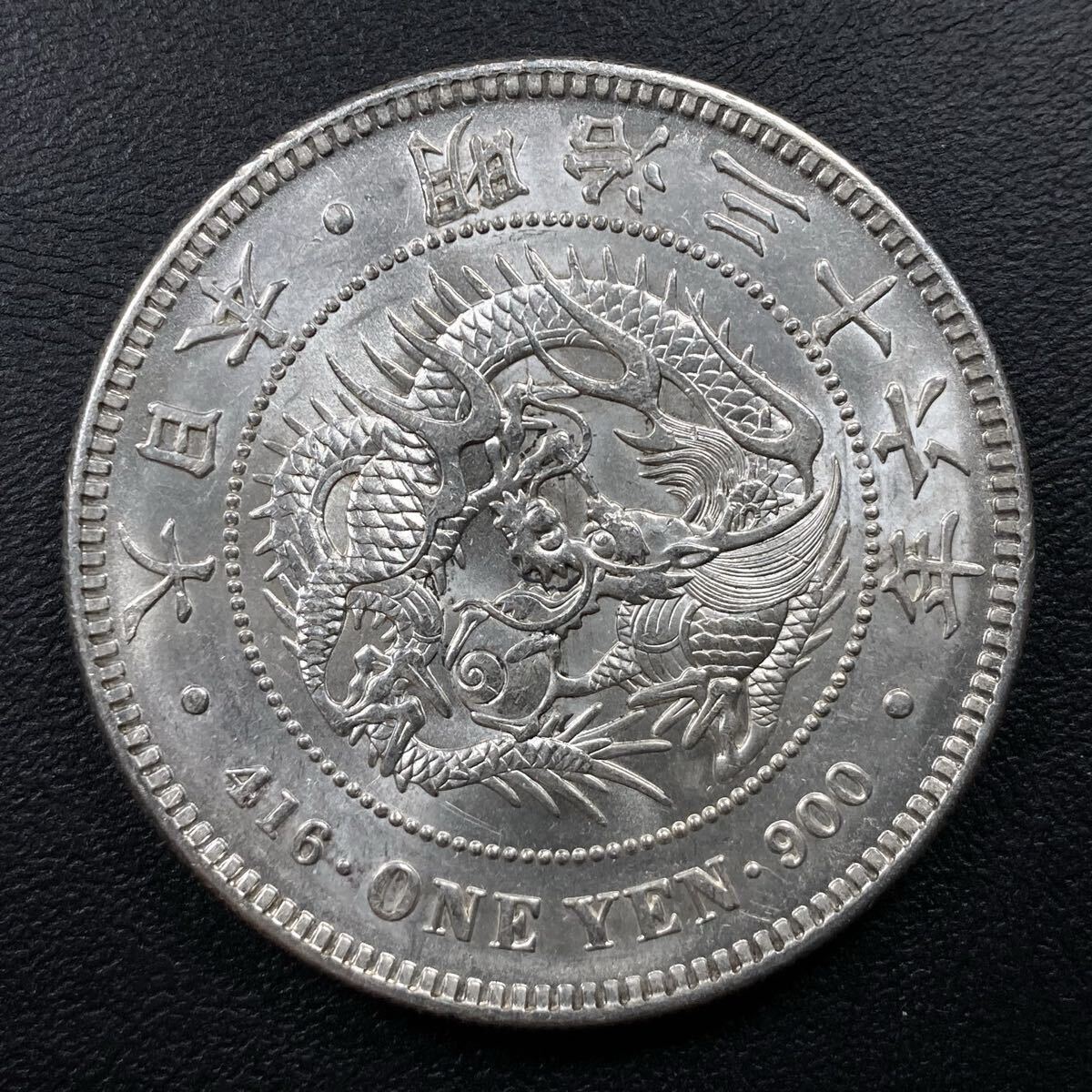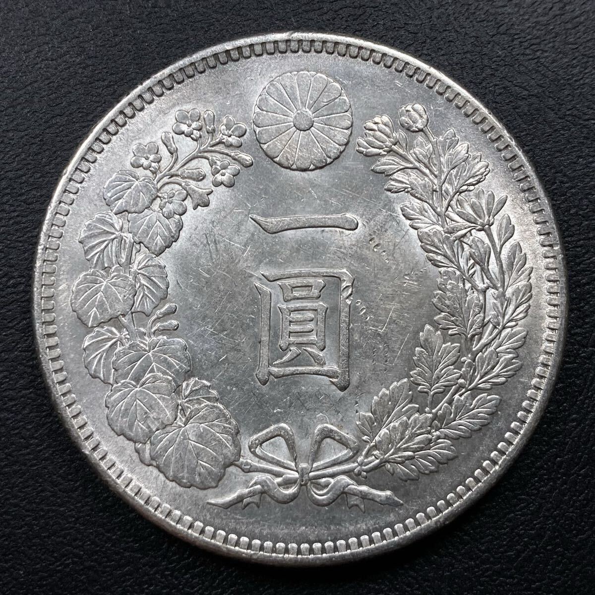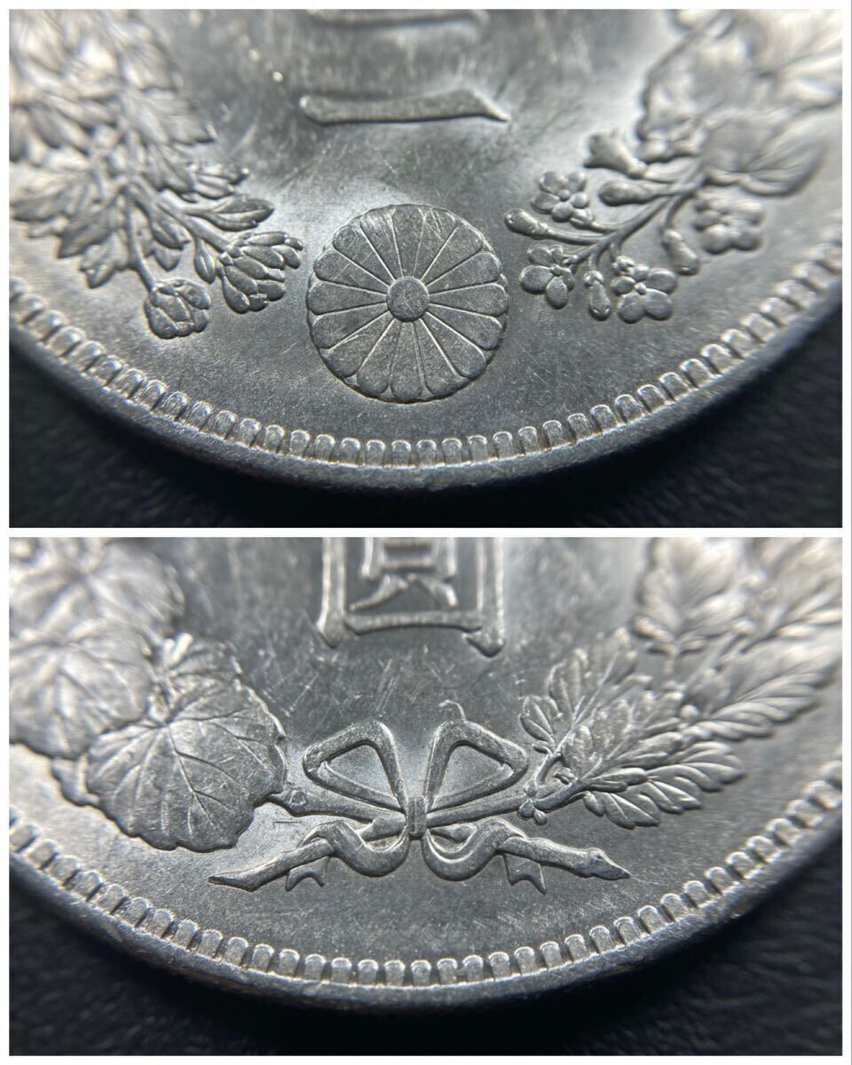 こちらは入手時準未使用の新1円銀貨の明治36年になります。