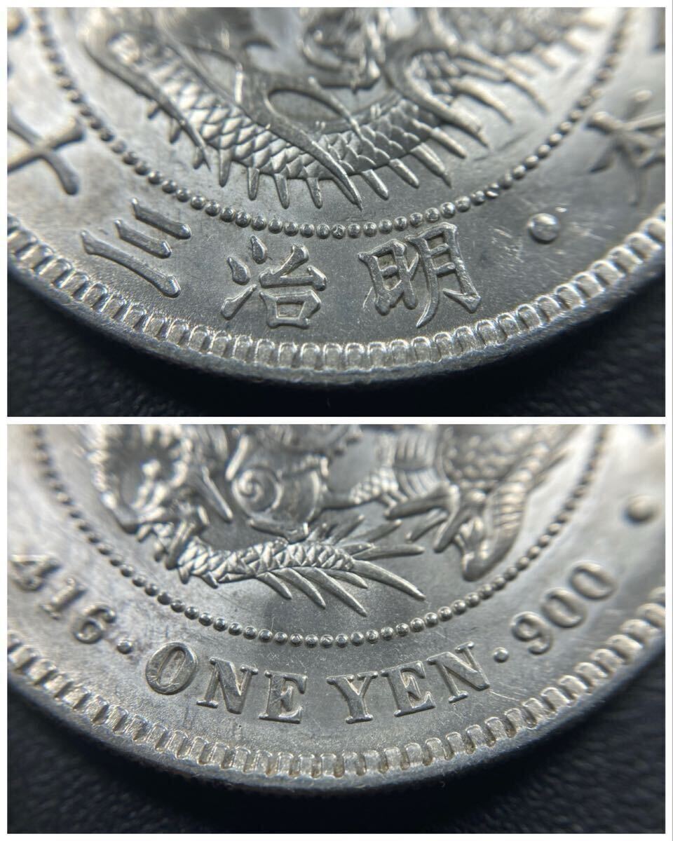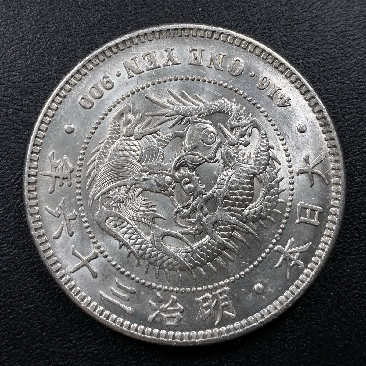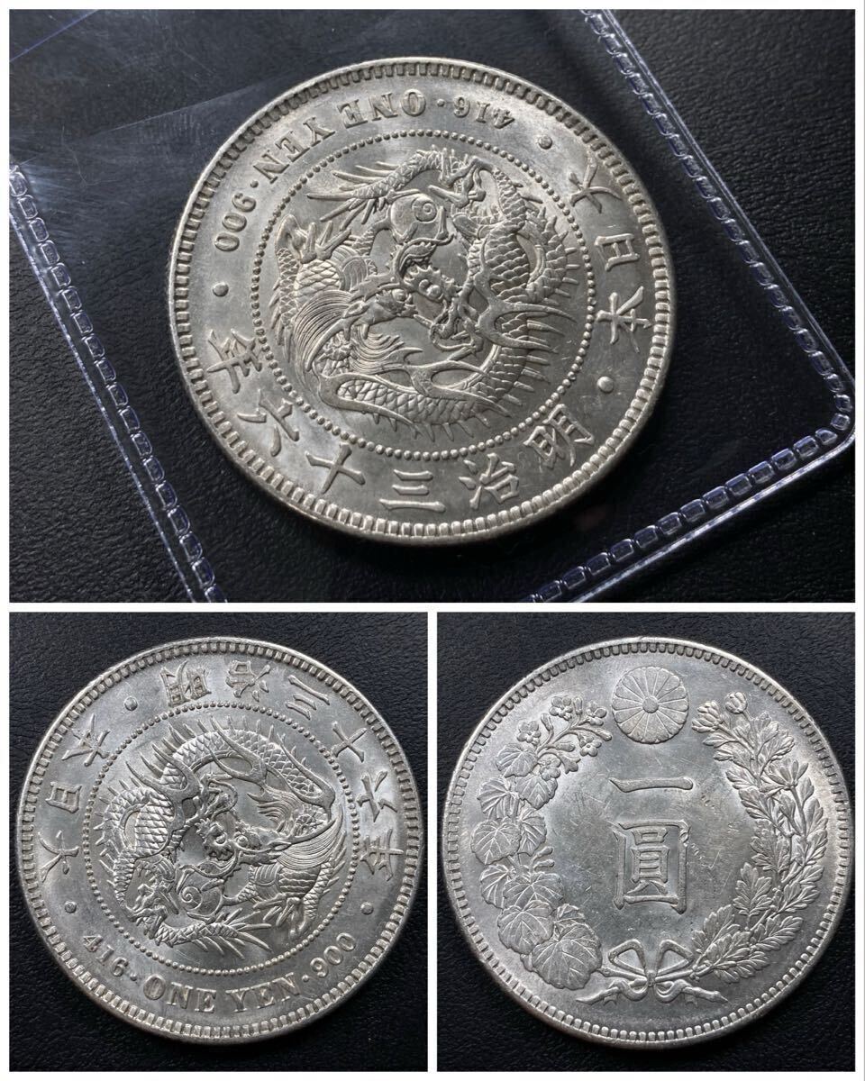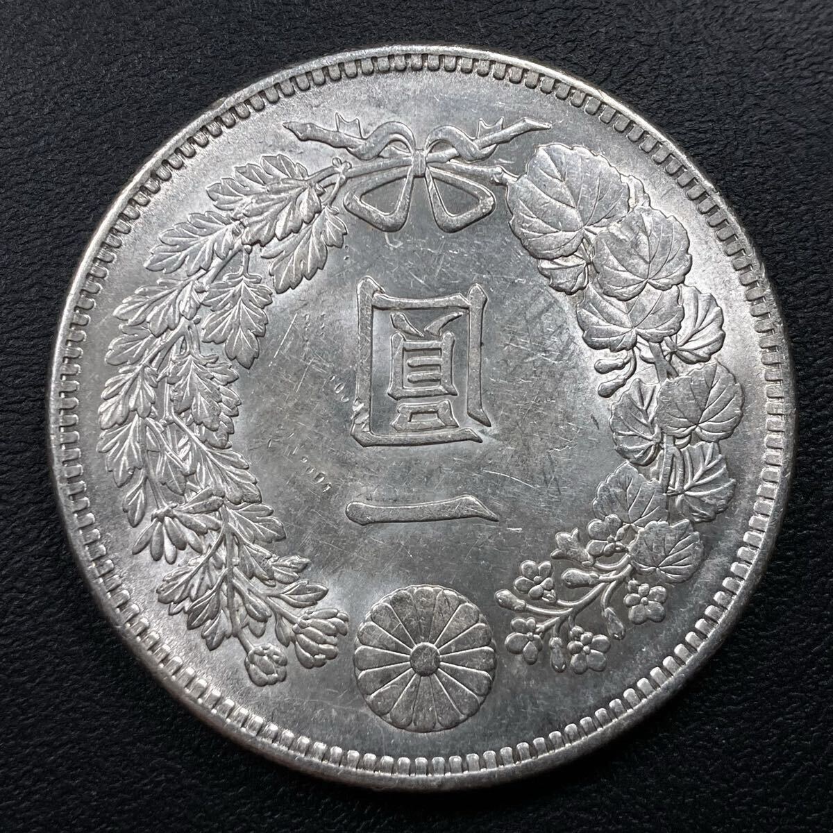 こちらは入手時準未使用の新1円銀貨の明治36年になります。