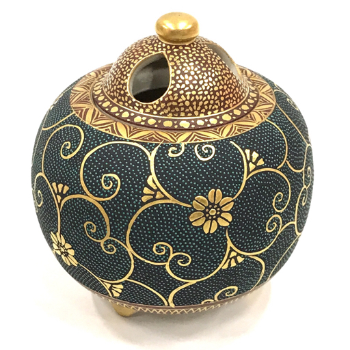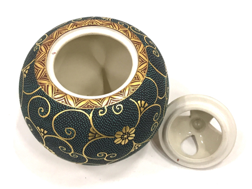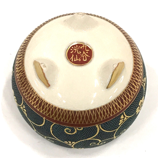 | 九谷焼 洸仙 銘あり 青粒鉄仙 香炉 陶器 直径5.3cm 高さ約12.5cm 香具 茶道具 保存木箱付き 現状品 |