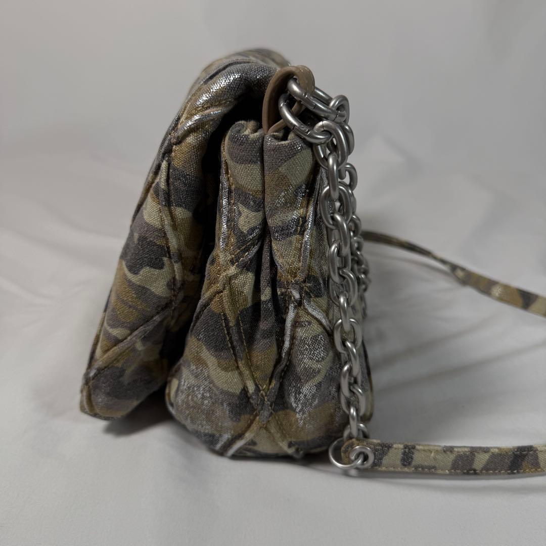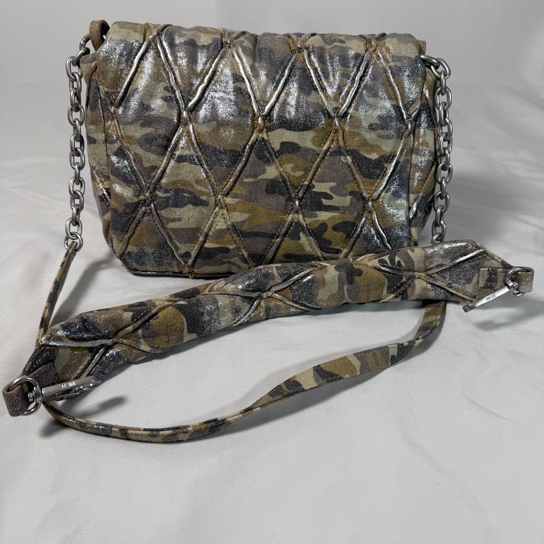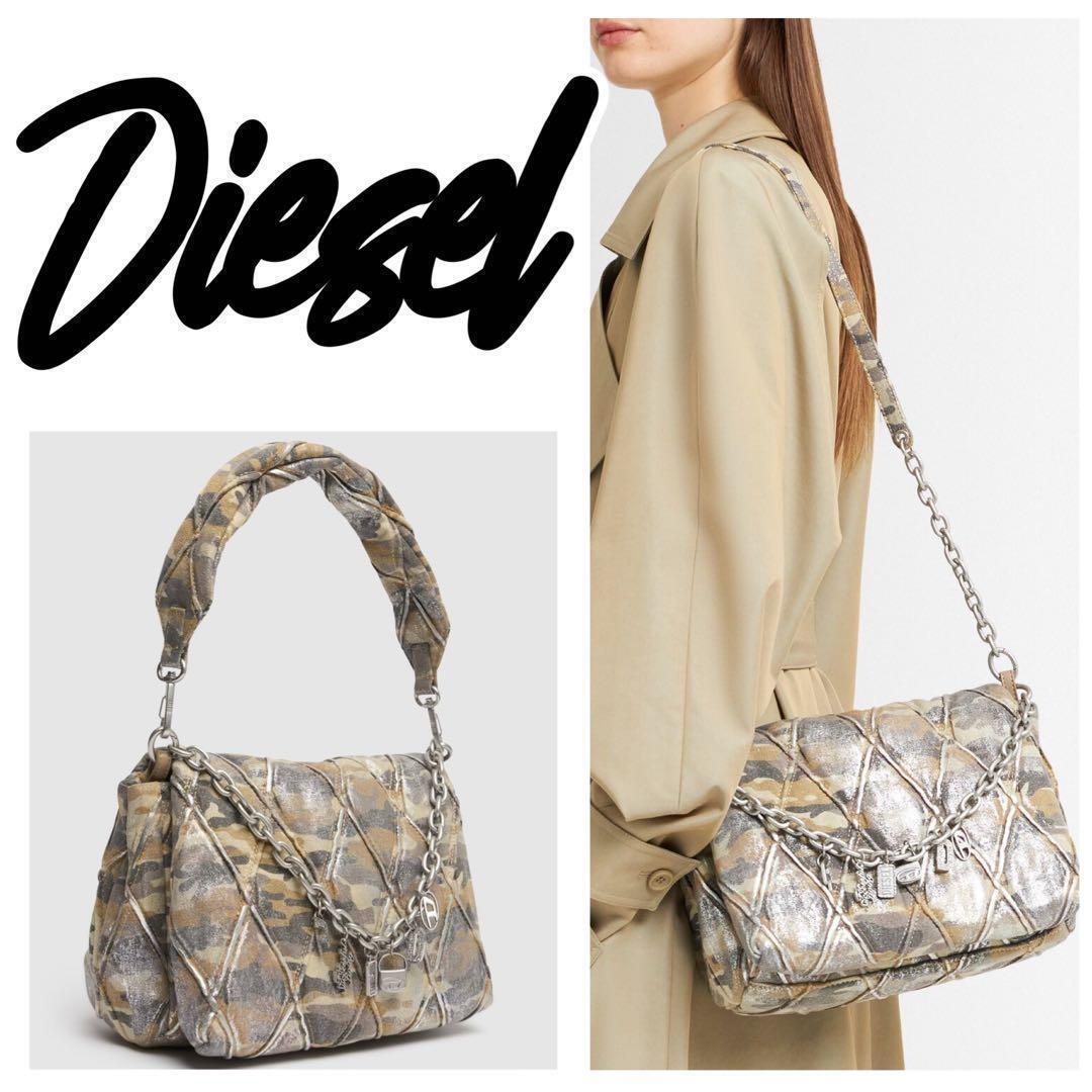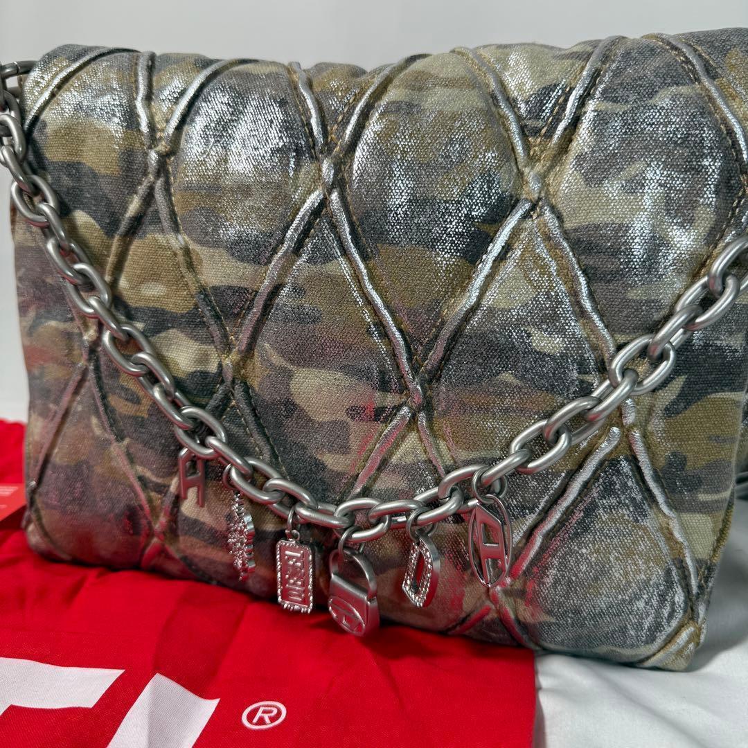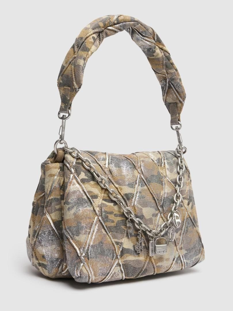 カモフラージュ柄のキルティングキャンバスにシルバーホイルを重ねた「CHARM-D」シリーズのショルダーバッグ。お馴染みのレタリングチャームは、ディーゼルを象徴するチャームへとアップデートされました。クロスボディとしてもスタイリングができる汎用性の高さも◎。内ポケット付きで、実用性にも優れた一品です。
