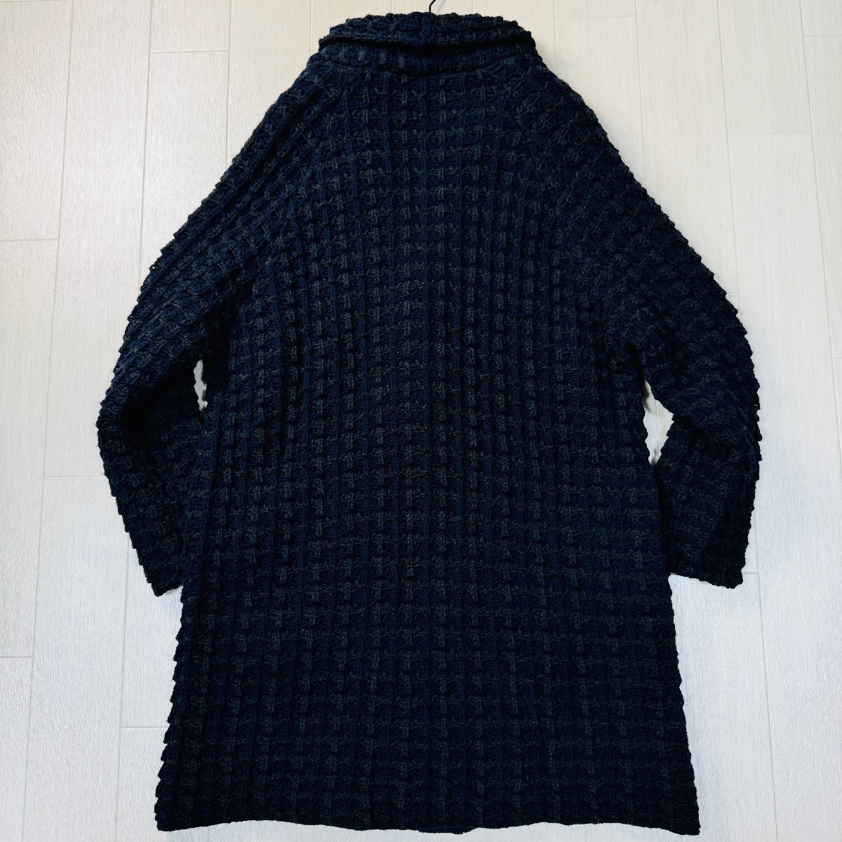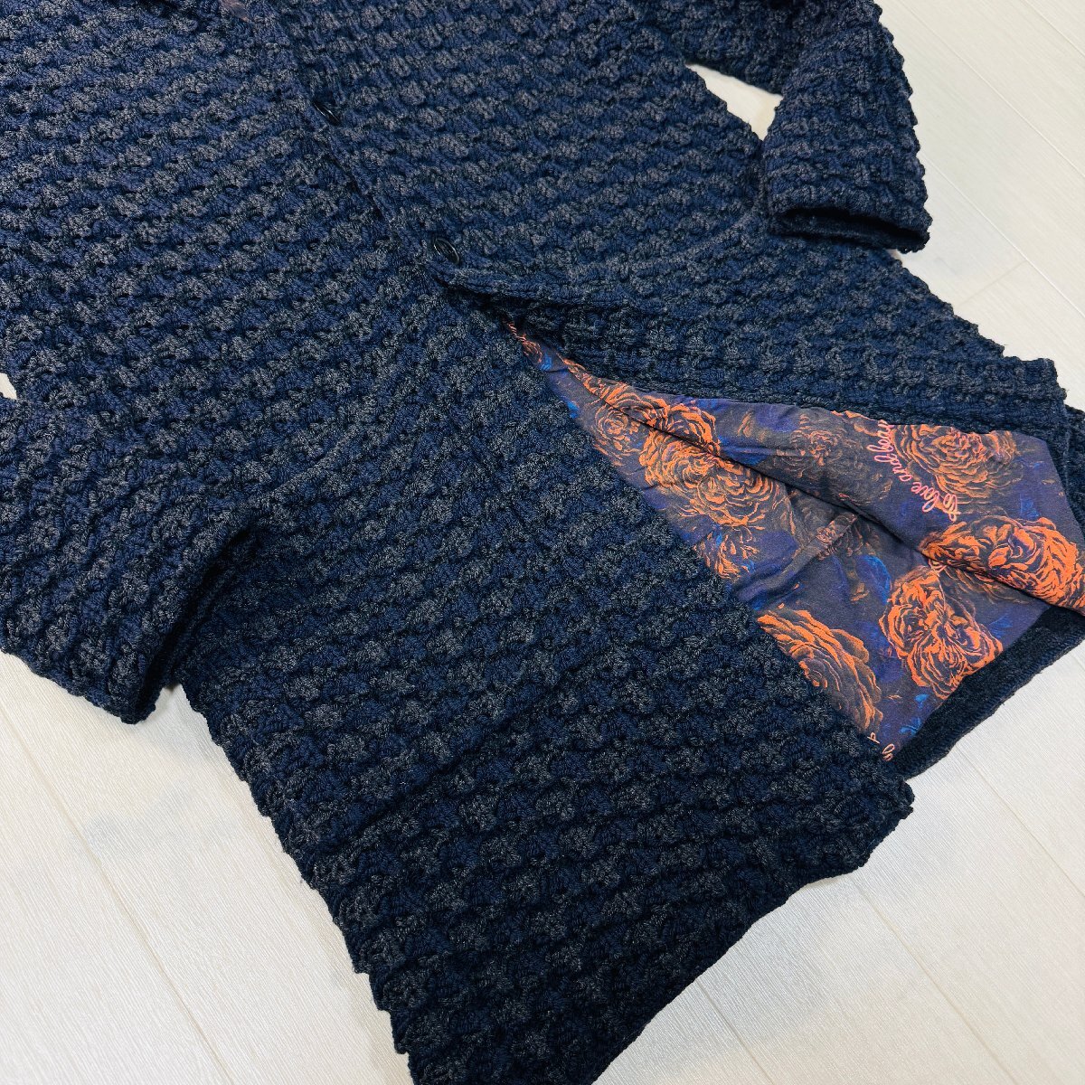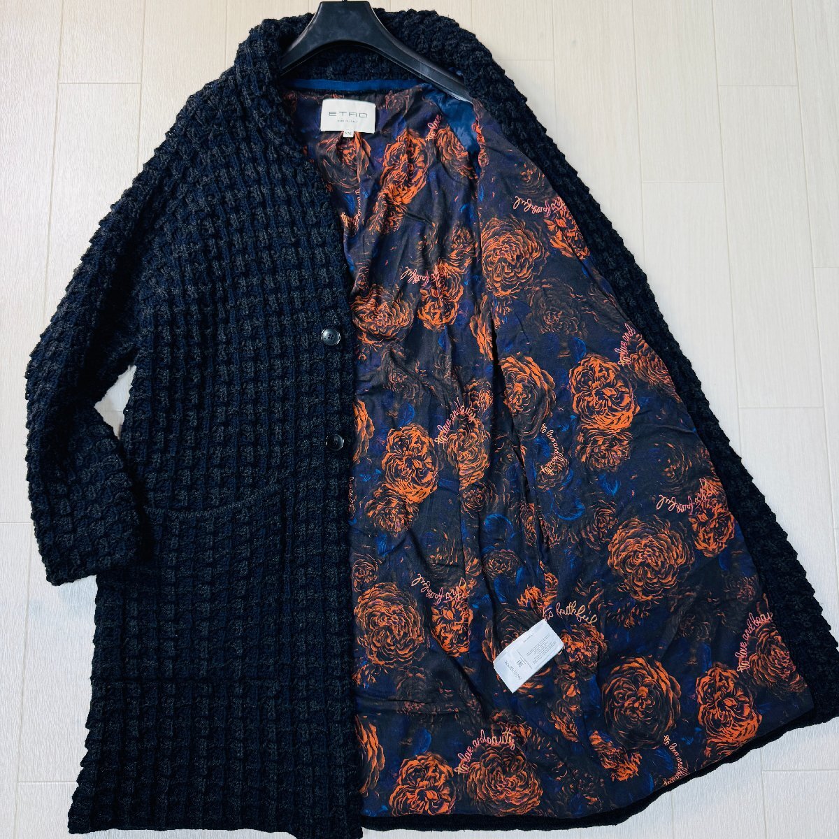 美品/2XL-3XL相当★エトロ ETRO ケーブル編み ニットコート チェスターコート ジャケット アウター メランジウール 厚手 薔薇柄 メンズ 紺