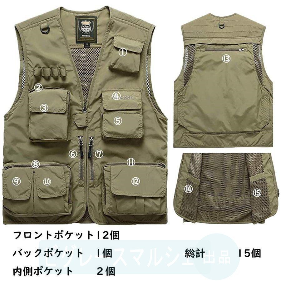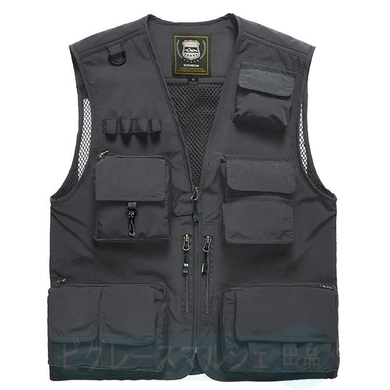 フィッシングベスト カメラマン メンズ アウトドア メッシュ ジャケット ベスト トップス 登山 多機能 速乾 作業服 グレー hw1423.gl.XL