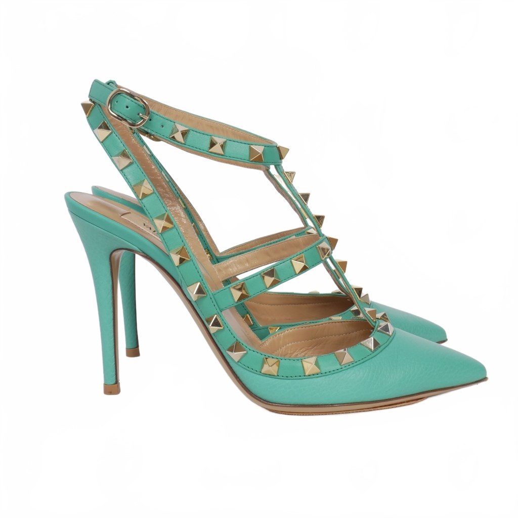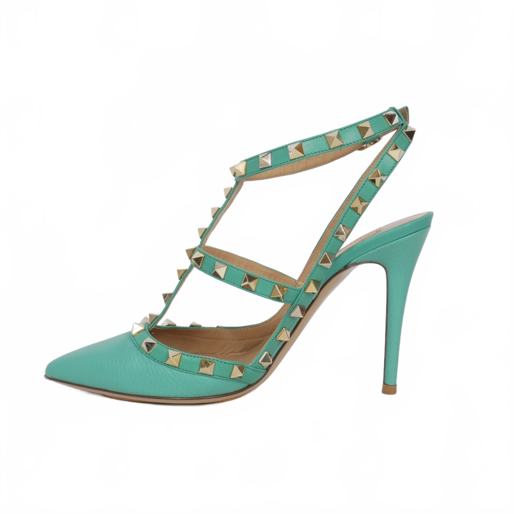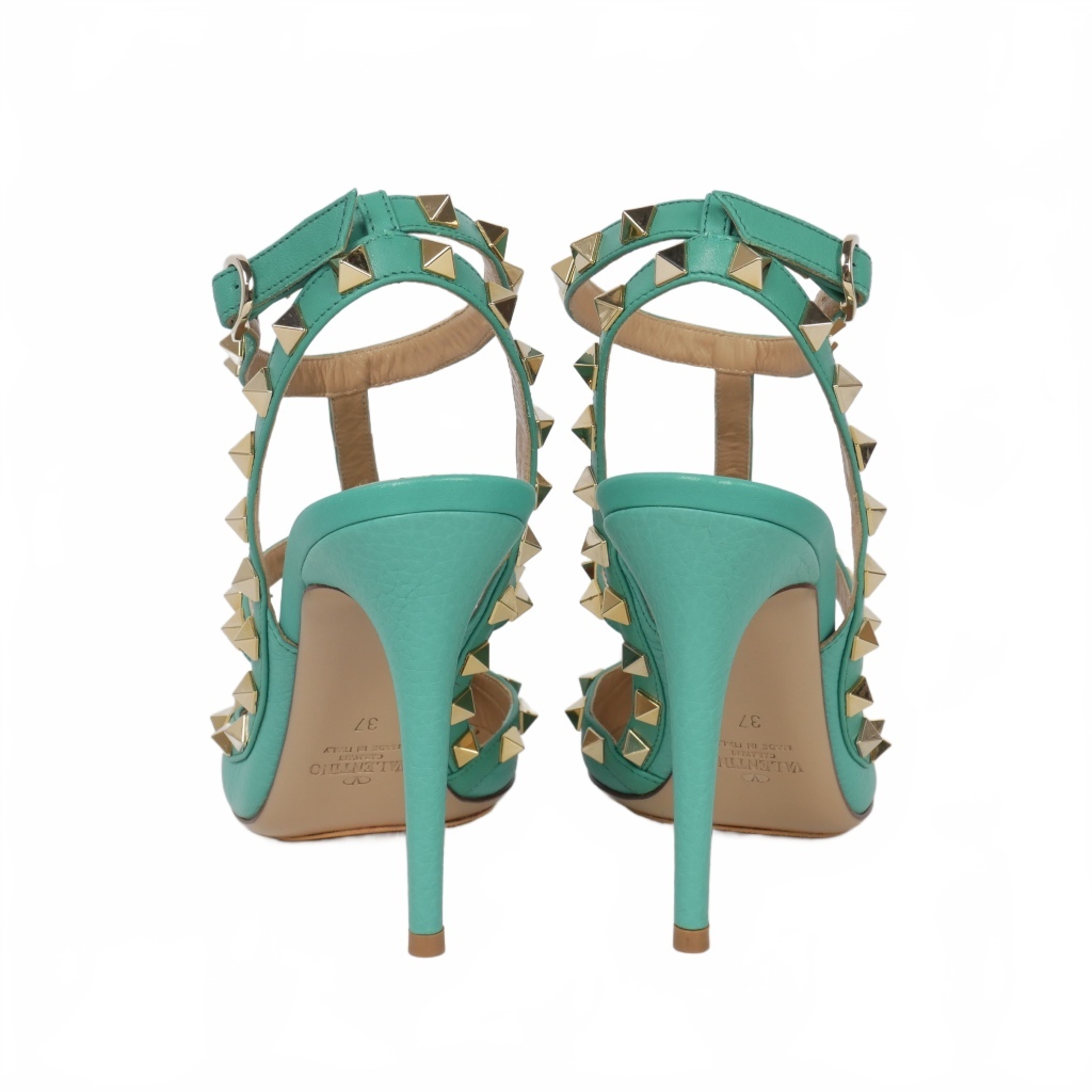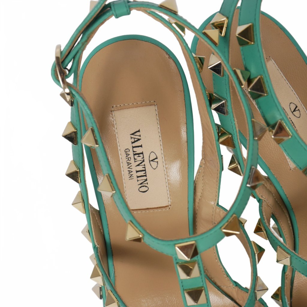 ヴァレンティノ ヴァレンチノ VALENTINO ロックスタッズ ストラップ ヒール サンダル ポインテッドトゥ 37 緑 グリーン レディース