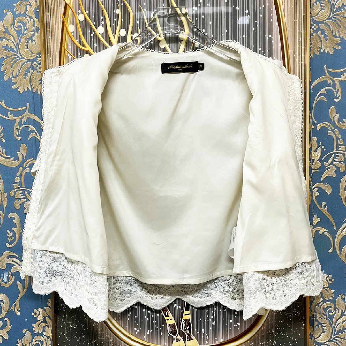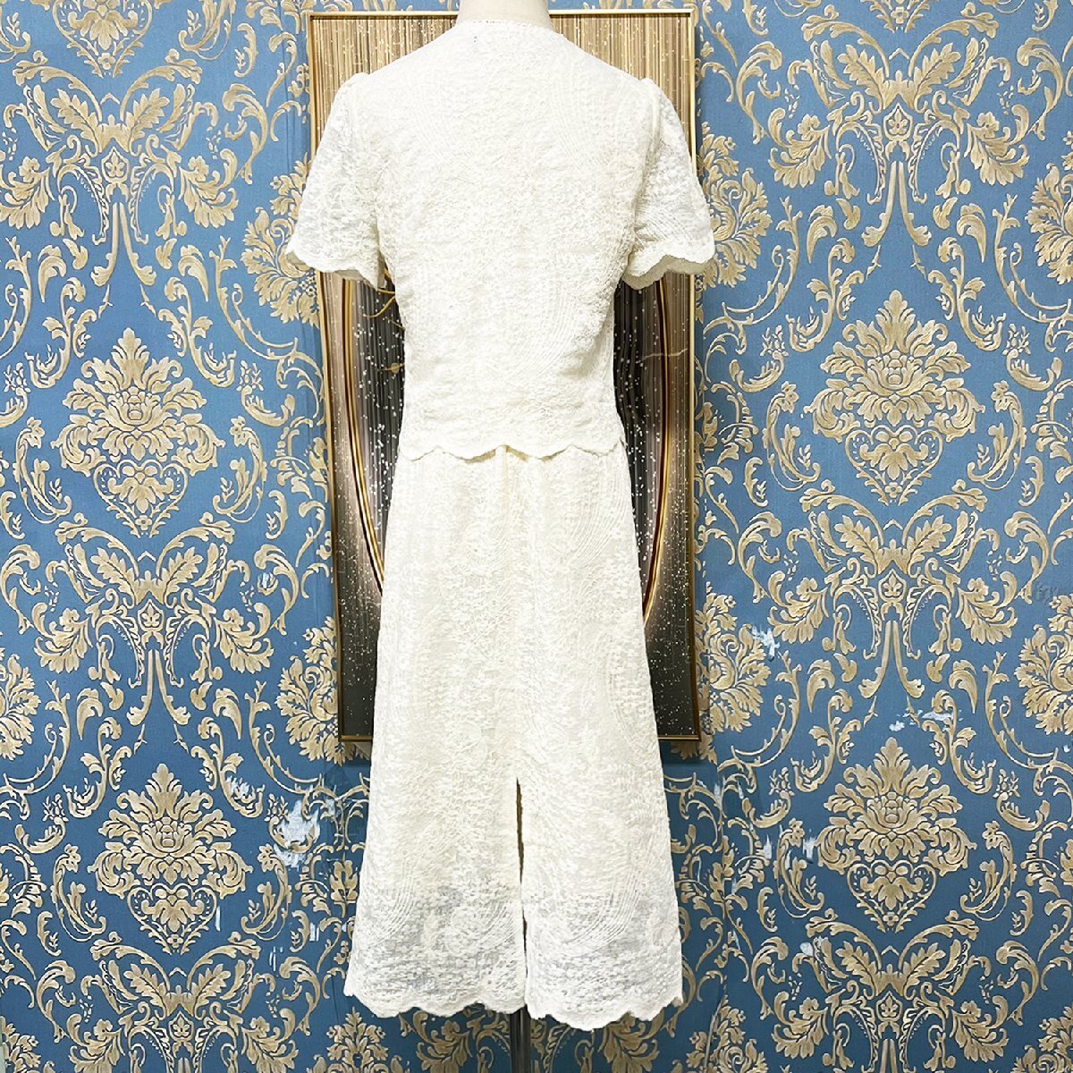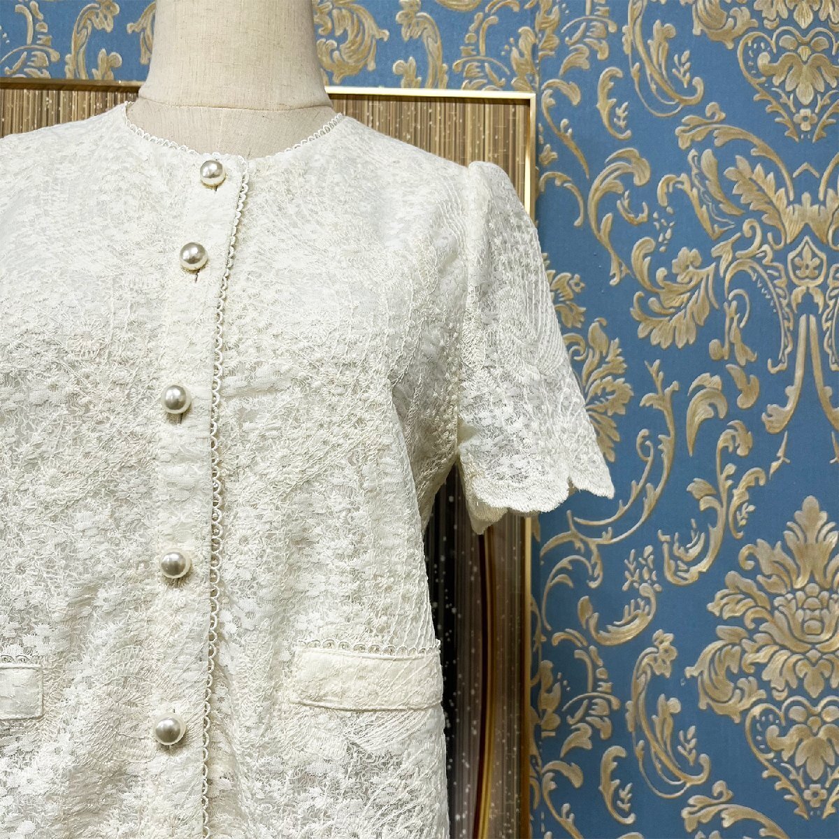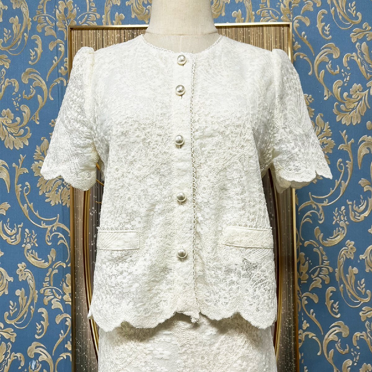 定価7万★christian milada・ミラノ発・上下セット★上品 ソフト レース 気品 2点セット セットアップ スカート 半袖シャツ OL 通勤 M/36サイズ