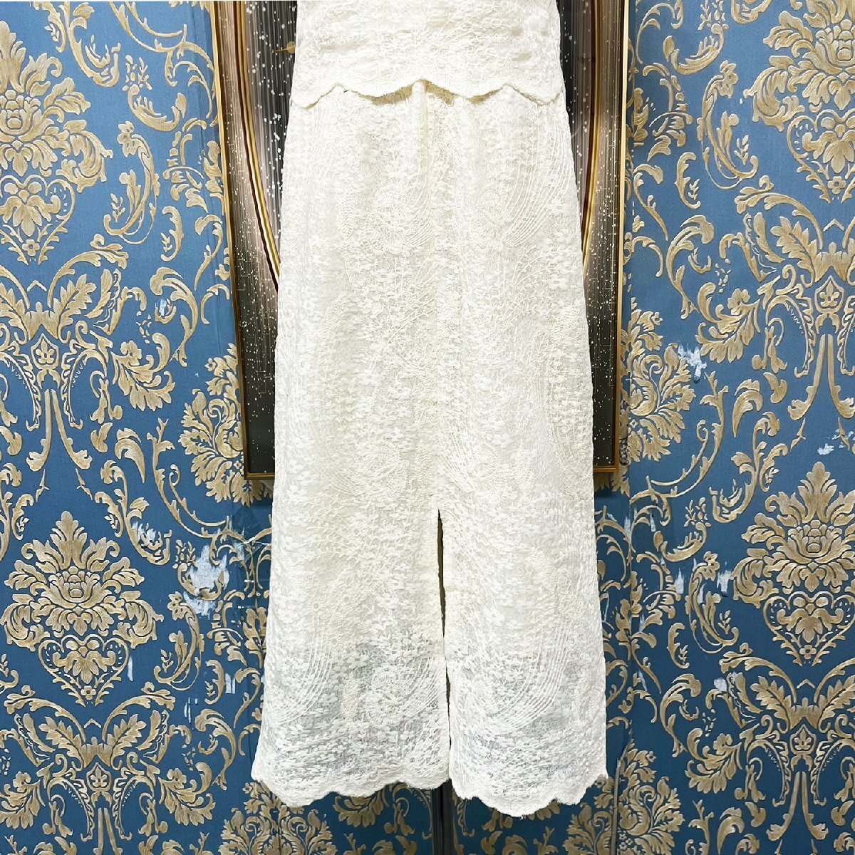 総レースのセットアップスタイルで上品な大人の着こなしに。程よい透け感のレースデザインが大人の女性らしさをアピール。ロング丈のスカートが下半身のボディラインを覆い隠せて、女性らしいシルエットを作り出す。スカートはウエスト位置を高めに設定しており、優れたカッティングによって体型をカバーしつつ、脚長効果や着痩せ効果も期待できます。