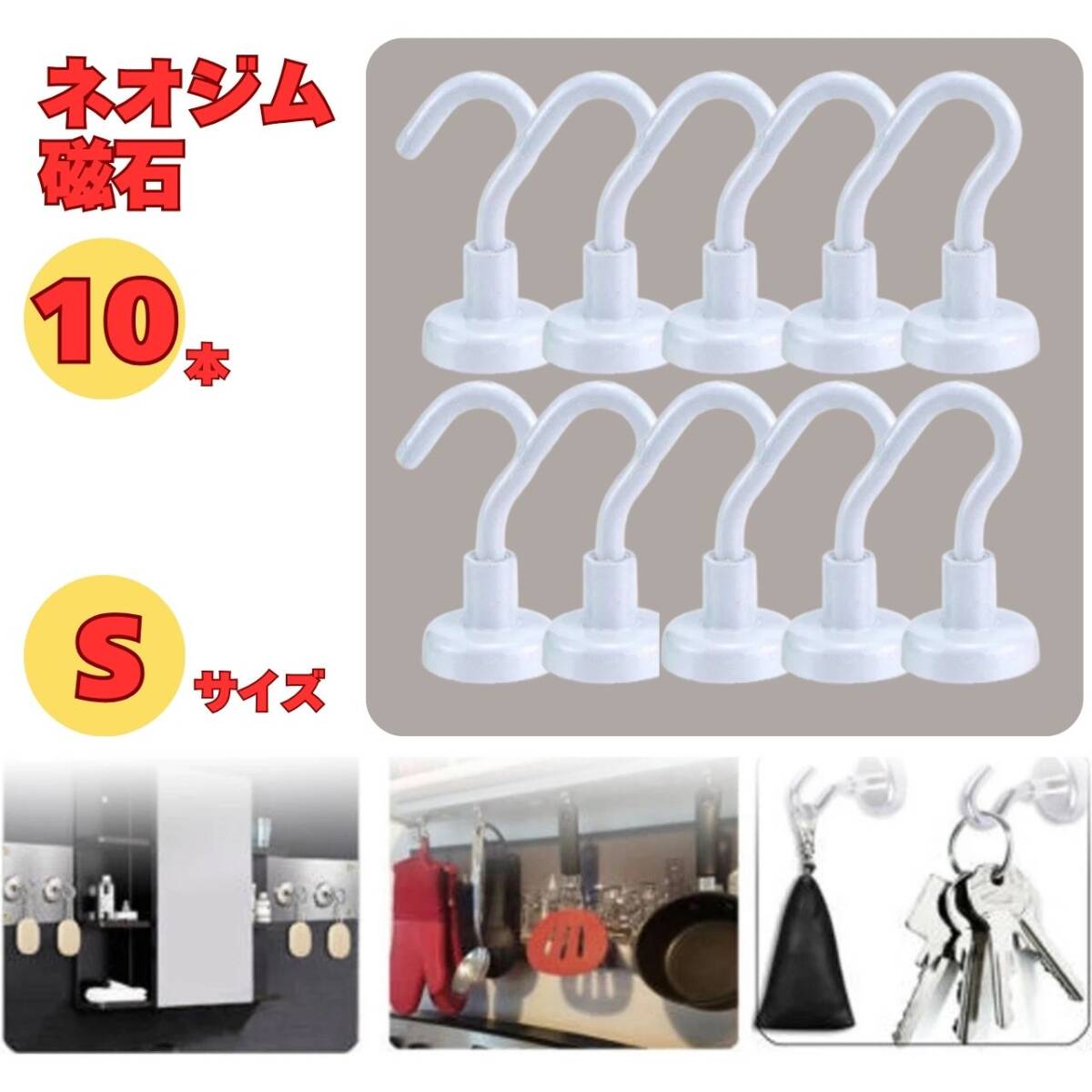 マグネットフック 大きめ 白 10個セット キッチン 収納 フライパン フック レンジフード