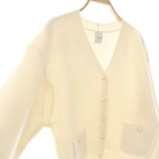 スピック&スパン Spick&Span 24AW パール畦ニット カーディガン 長袖 Vネック ウール オフホワイト /NR ■OS レディース