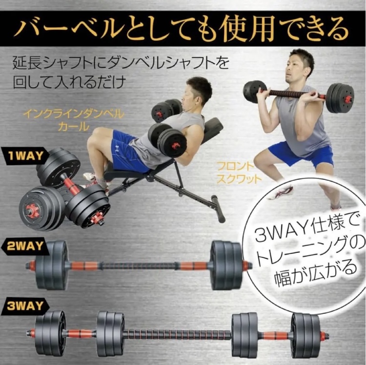 ダンベルにもバーベルにもなる、マルチなトレーニング用品です。