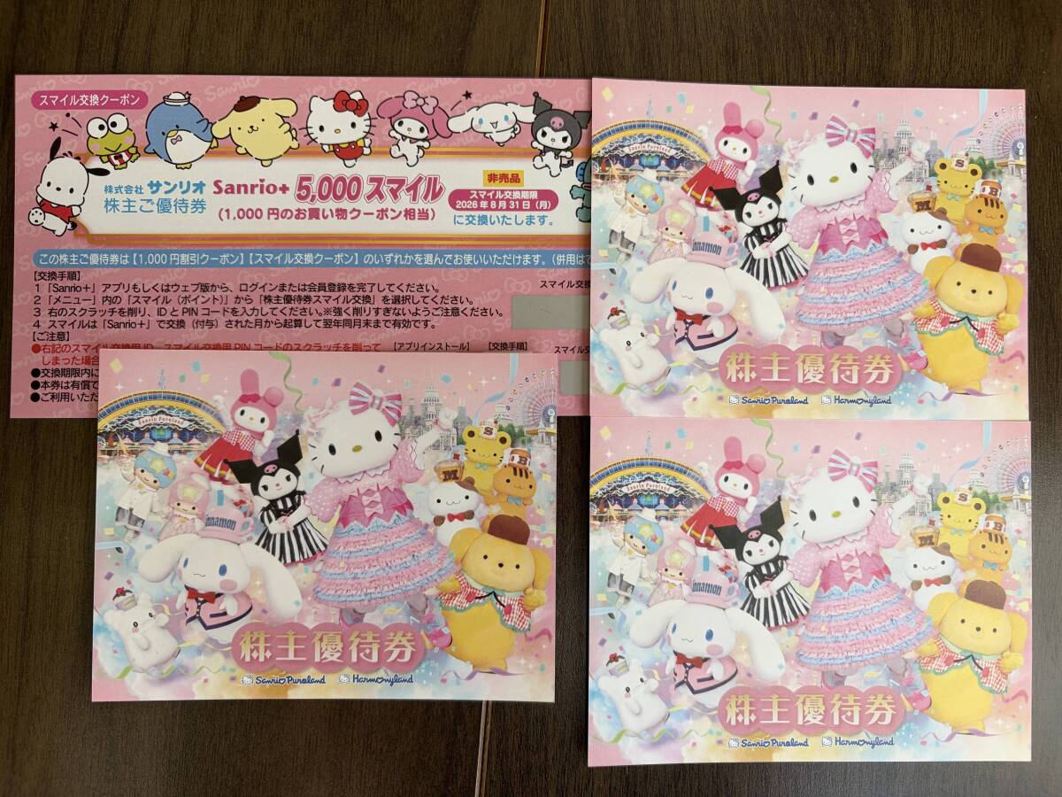 サンリオピューロランド株主優待券3枚+1000円クーポン券1枚 2026/8/31まで 送料無料