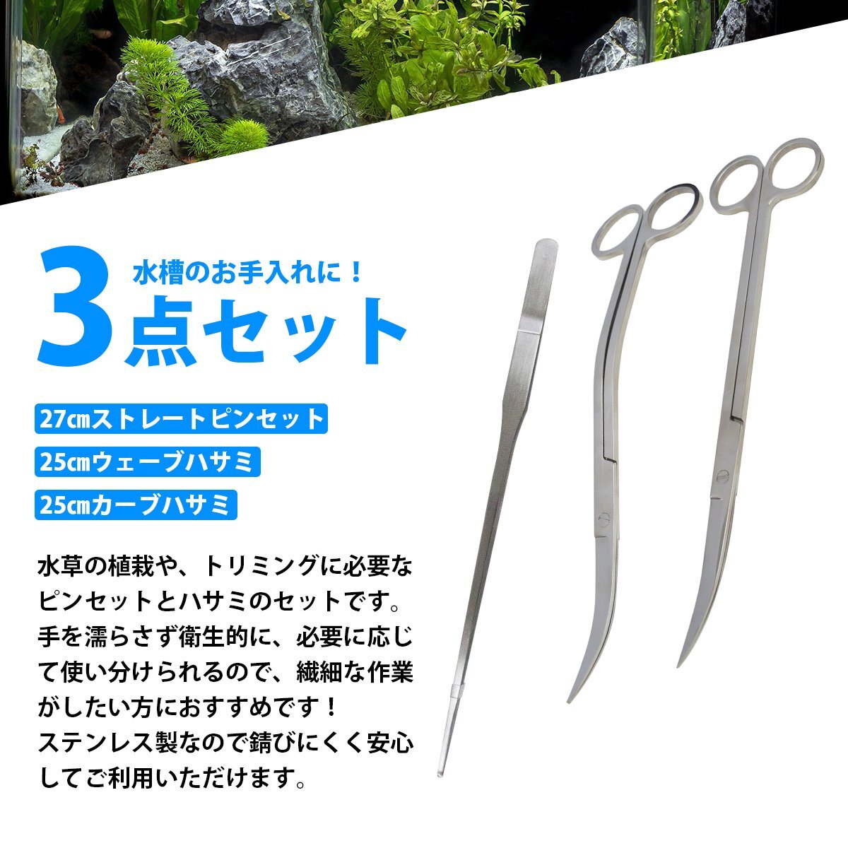 3点セット 『250mm 25cm ハサミ 2種類 & 270㎜ 27cm ピンセット ストレート 』 水槽 水草トリミングキット