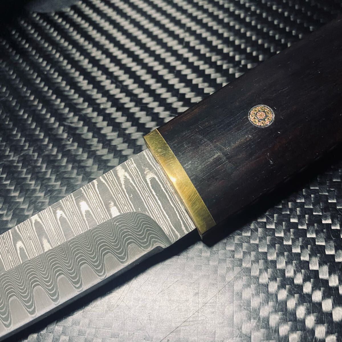 超高品質 黒檀和式 日本刀 サバイバルナイフ 脇差 ダマスカス鋼製 薪割り 專用シース付き キャンプ アウトドア ハイキング 野外登山 161g