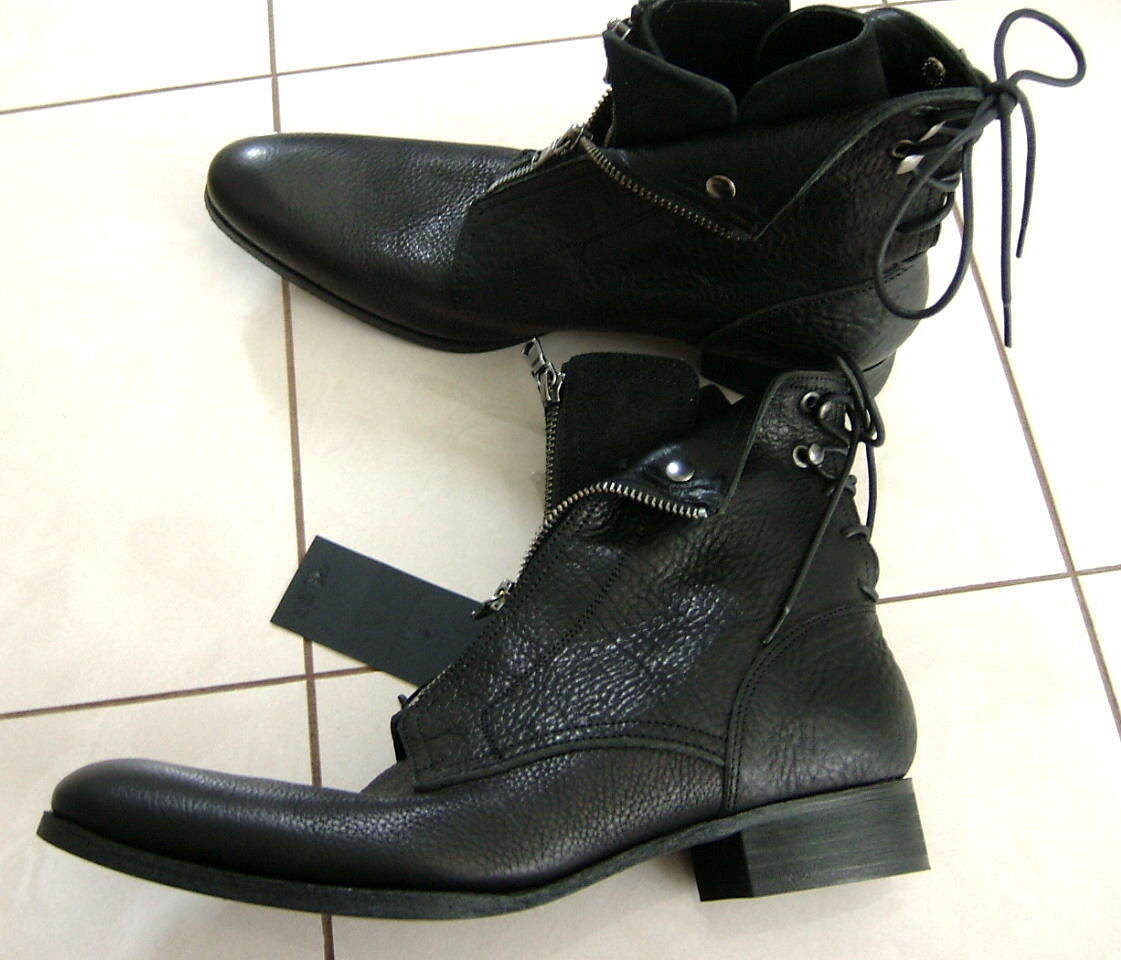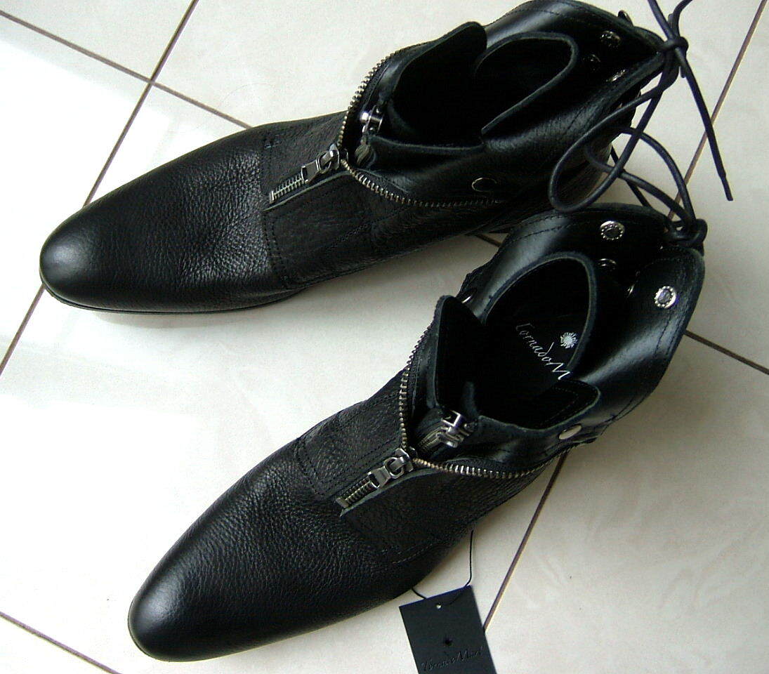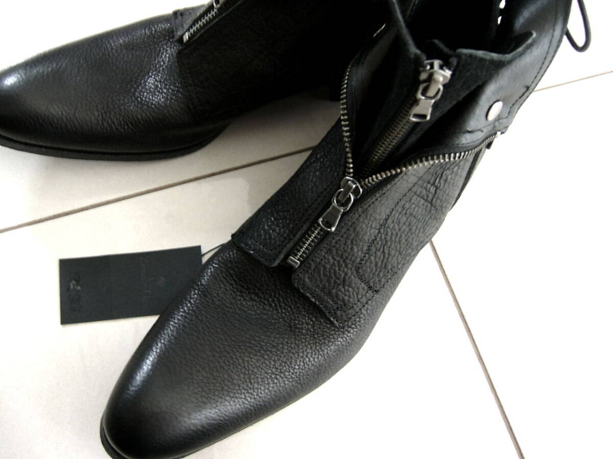 ■レイヤードデザインのZIPアクセントのブーツ フロントのシャープなカッティングにバックはレースアップです 本体のヌメ革とレイヤード部のベロアコンビネーションで絶妙なアクセントです 履き口を折り返してドット釦で止めたりZIPの開閉で履き方を様々に楽しめます