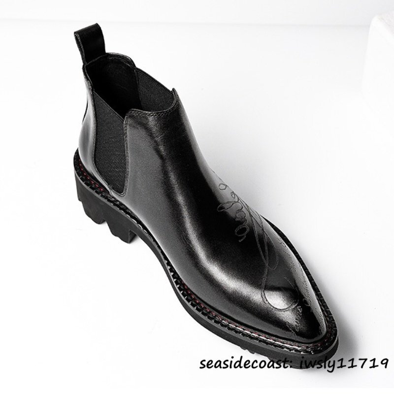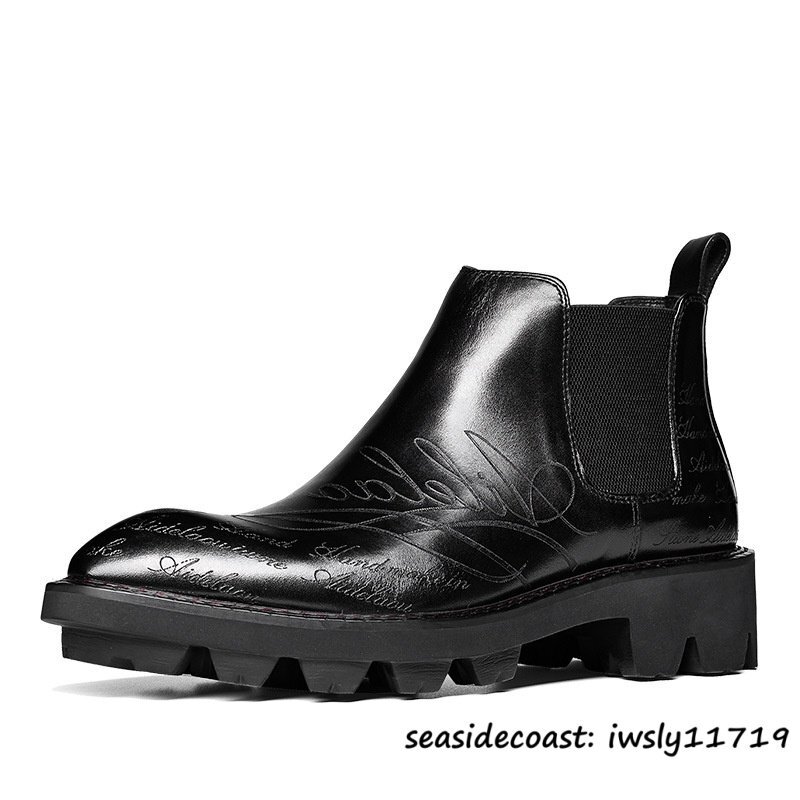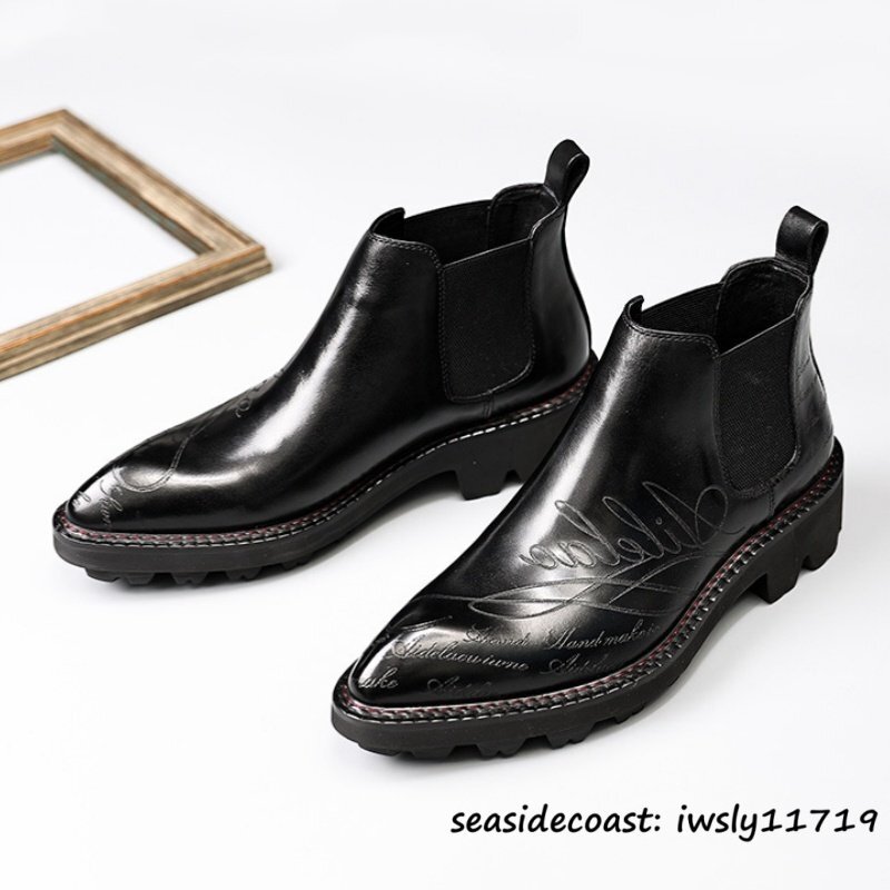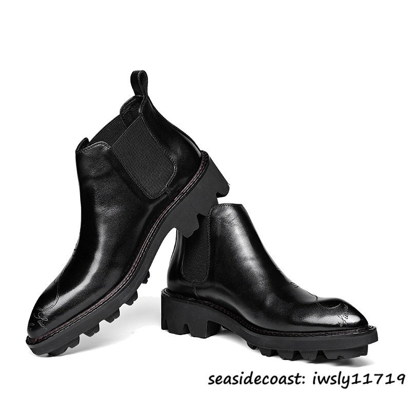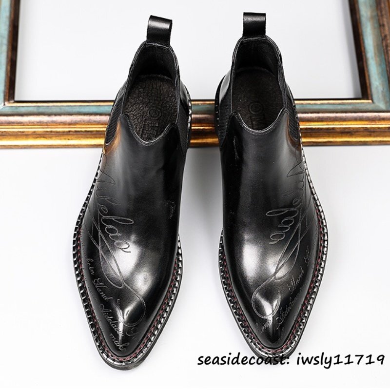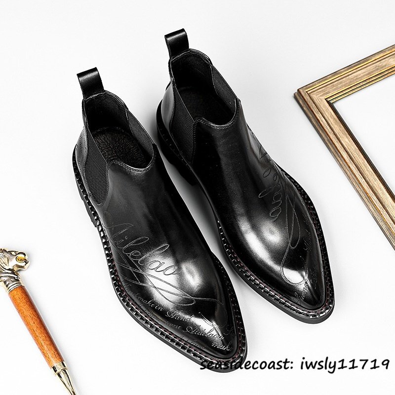 定価12万■最上級 マーティンブーツ 職人手塗り上げ レザーブーツ 牛革 本革 ショートブーツ 皮靴 紳士靴 ビジネスブーツ ブラック 25.5cm
