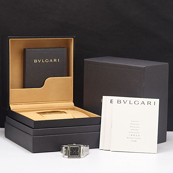 1円 箱付 稼働 ブルガリ クアドラード SQ22SSS L8699 QZ ブラック文字盤 レディース腕時計 9506200 12TLT SMZ