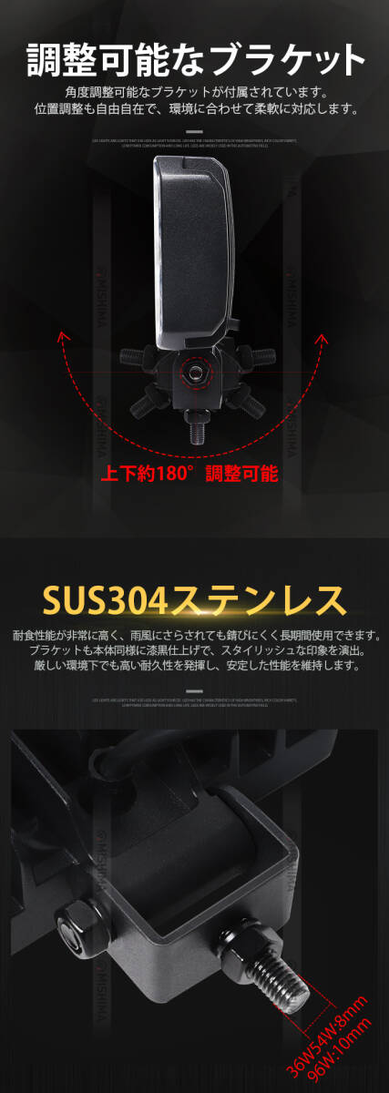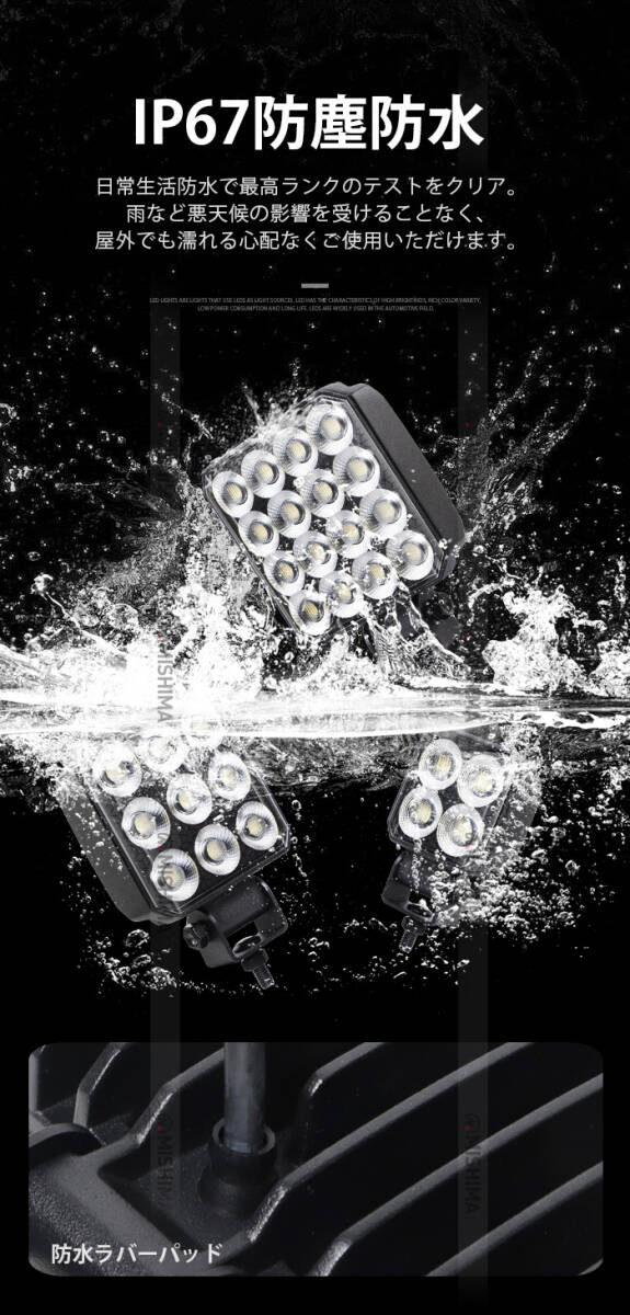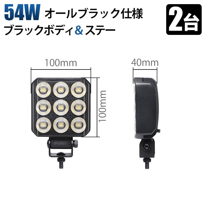 msm6554【2台】小型 軽量 LEDワークライト 作業灯 オールブラック 54W 農業 漁業 建設 工事 軽トラ トラック 12V 24V 広角拡散 荷台灯 防水